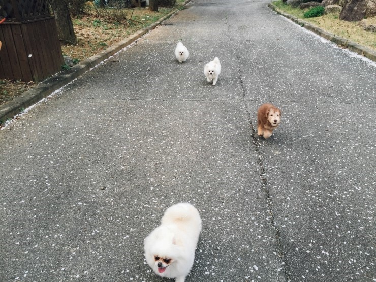 벚꽃비 내리던 날 씐난 우리집 개린이들...