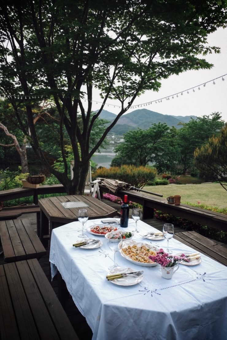 가끔은 남한강을 바라보며 와인파티로 분위기도 잡아보고요...