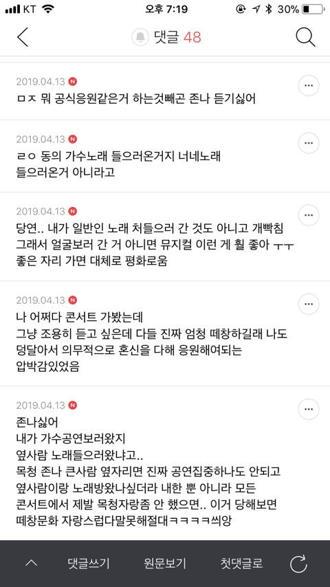 작성자이승규 작성시간 25.11.10 떼창은 상관없음 리듬 타면서 옆에 있는 사람은 좀 안쳤으면...... 좌석이잖아.. 좌석에서 왜 춤을 추는거야 ㅅㅂ.. 내가 부대끼고 싶었으면 스탠딩을 갓겟죠