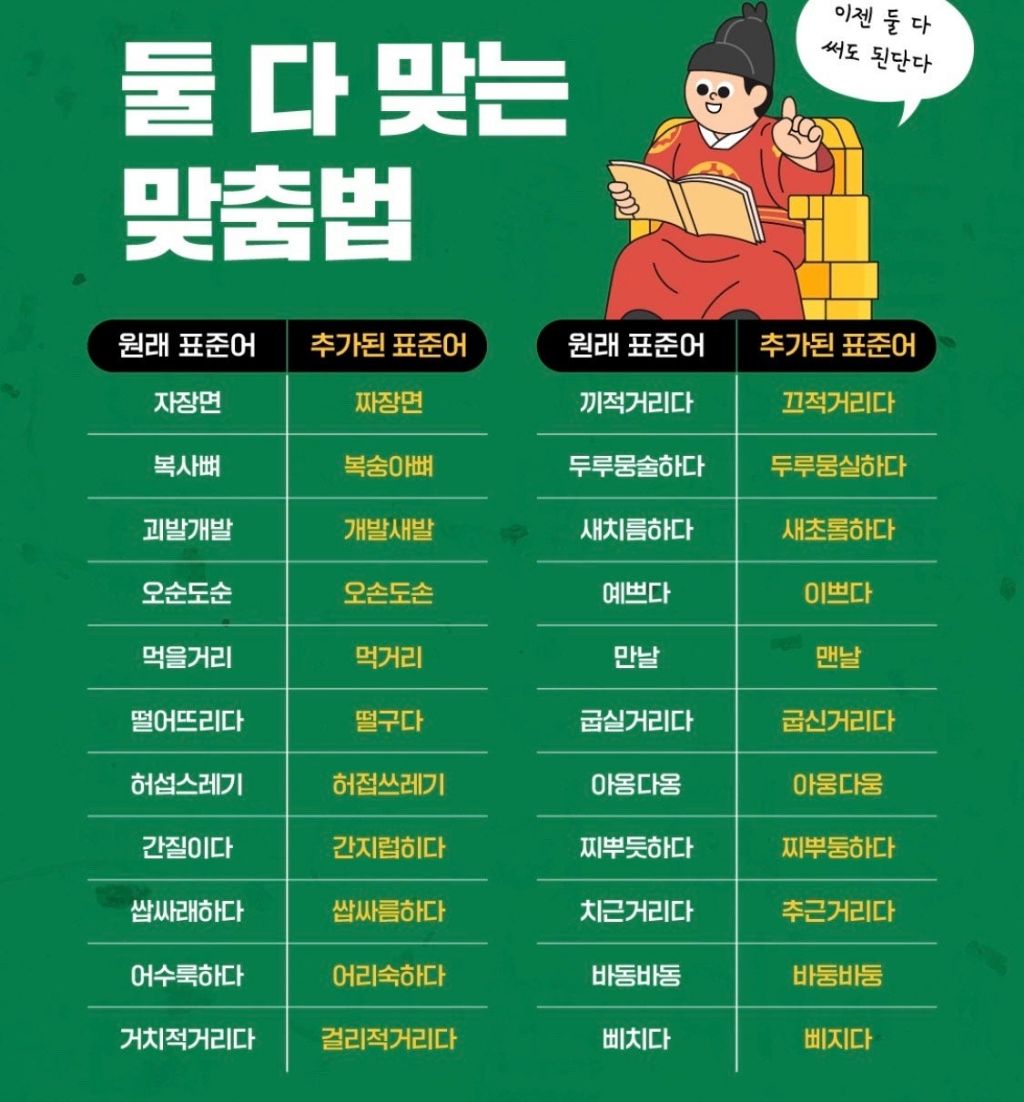 작성자EDIYA ISLAND 작성시간 25.11.09 이게 맞지 기존의 표준어가 있더라도 다수에게 통용되는 언어가 있다면 바꿔야 한다고 생각함