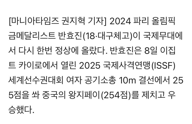 [여시뉴스데스크]'18세 신궁' 반효진, 세계선수권서 금빛 총성"...10m 공기소총 한국신기록 우승