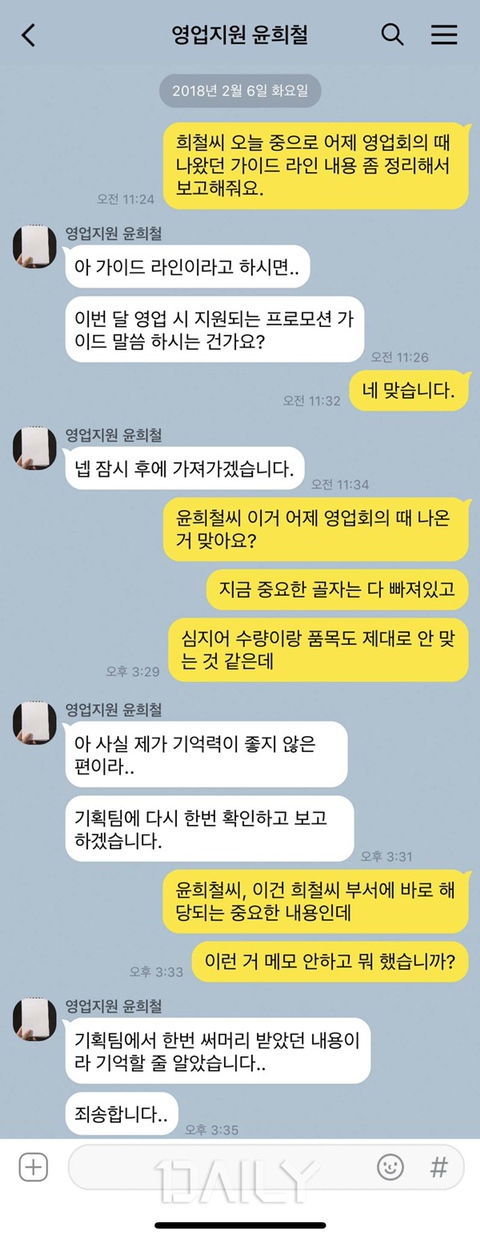 1. 기억력이 안좋은데 메모도 하지 않아 업무에 혼선을 줌