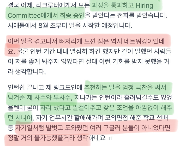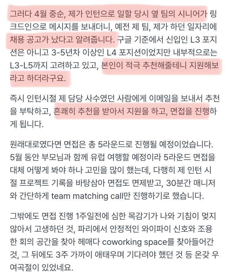 [흥미돋]나이 40에 구글 인턴으로 합격 했습니다 작성자계절 틈에 잠시 피는 낯선꽃처럼|작성시간25.11.10|조회수32,867 목록 댓글 13 글자크기 작게가 글자크기 크게가 출처: https://table-m.cafe.daum.net/p/1231992446/509793196466500608나이 40에 구글 인턴으로 합격 했습니다출처 : https://okky.kr/articles/1446919 https://okky.kr/articles/1155034table-m.cafe.daum.net 다음검색 현재 게시글 추가 기능 열기 북마크 공유하기 신고 센터로 신고 댓글 댓글 13 댓글쓰기 답글쓰기 댓글 리스트 작성자GoldenLambLionWorld | 작성시간 25.11.10 멋져 작성자오마년 | 작성시간 25.11.11 너무 멋있고 감격이야 작성자호그와트 마법사 | 작성시간 25.11.11 그럴 자격 있으세요 작성자익은야채 | 작성시간 25.11.11 대단하시다 작성자무조건잘될거임 | 작성시간 25.11.11 대단하다.. 댓글 전체보기