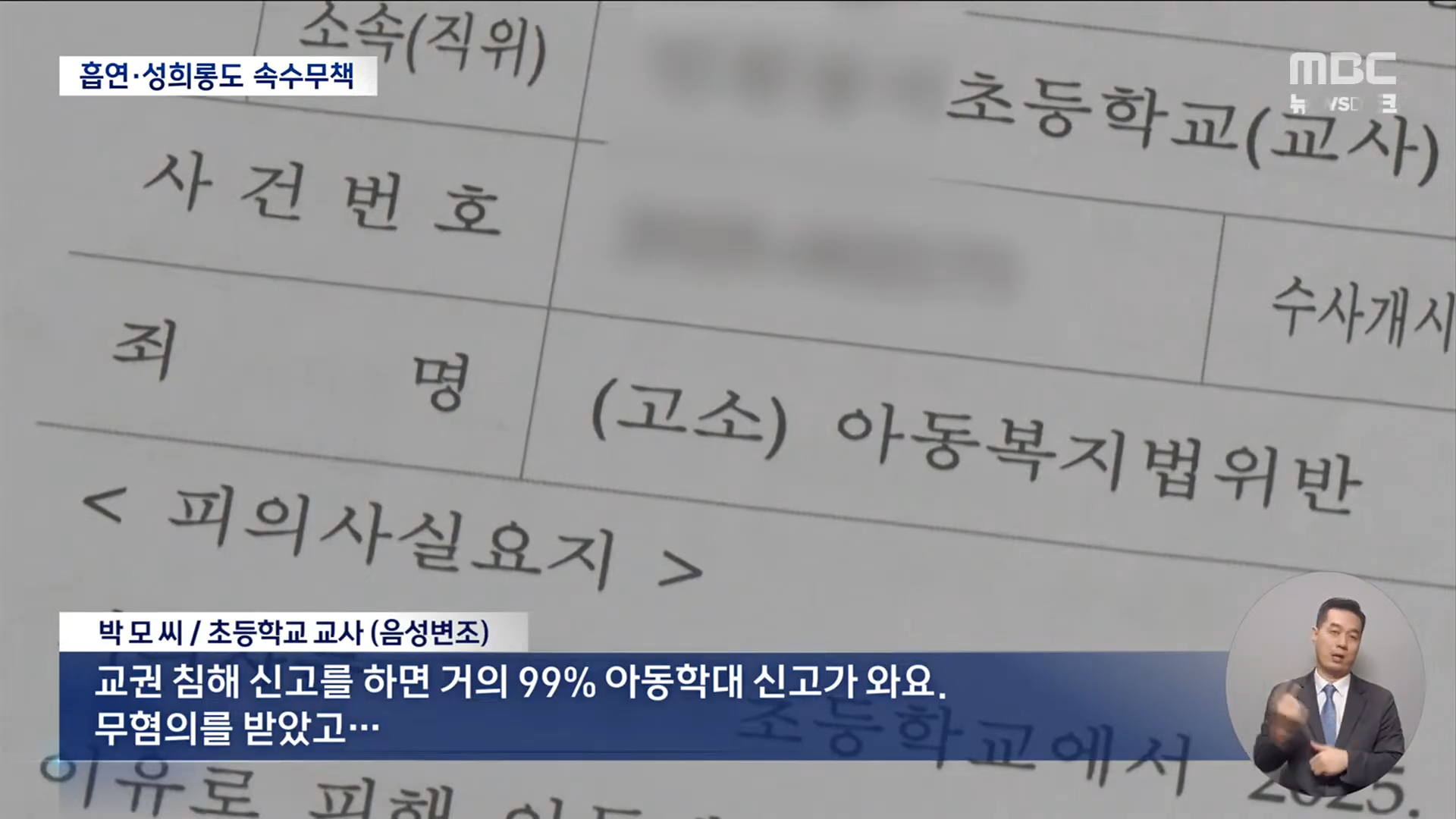 작성자진상트라우마 작성시간 25.11.11 교사들 상대로 한 학부모의 아동학대고소는 없애야한다고 봐 진짜 학대 피해자 구제 문제는 국회에서 알아서 하겠지 지금은 악용이 많으니 못하게 하는 게 답이라고 봄