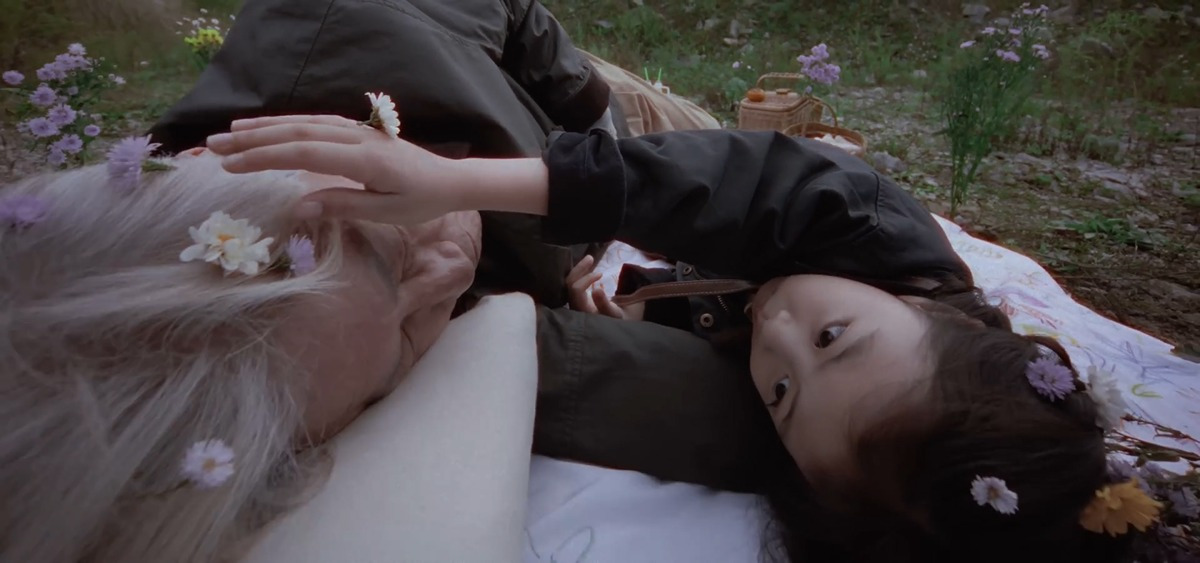할아버지가 어린 소녀와 누워있는 장면 -> 할아버지에겐 치매 걸린 할머니가 자신이 케어해야할 어린아이같은 존재