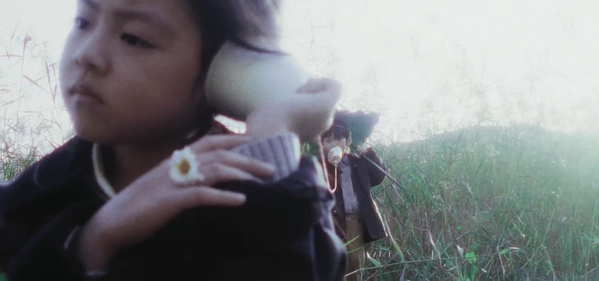 들판을 가로지르며 추억을 쌓는 소녀와 소년