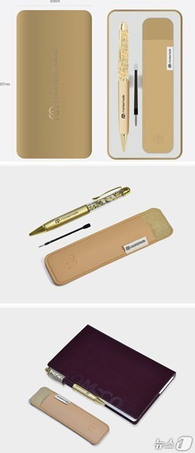 ‘황금볼펜’ 에디션은 황금색의 모던한 스틸 소재 케이스에 담겼으며, 구성품으로는 황금볼펜, 리필심, 휴대용 가죽케이스가 포함된다. 돈볼펜은 기존 출시한 ‘모던형’ 바디 전체를 황금색을 입혔고, 볼펜 상단에는 약 5만원권 한 장 분량의 화폐 부산물이 들어가 있다. 특히 리필심 추가 제공으로 실용성을 높였고, 가죽케이스는 멋스러움과 소장가치를 동시에 만족시킨다. 각 부속품에는 공사의 화폐부산물 브랜드인 ‘머니메이드(moneymade)’ 로고가 각인되어 있다.