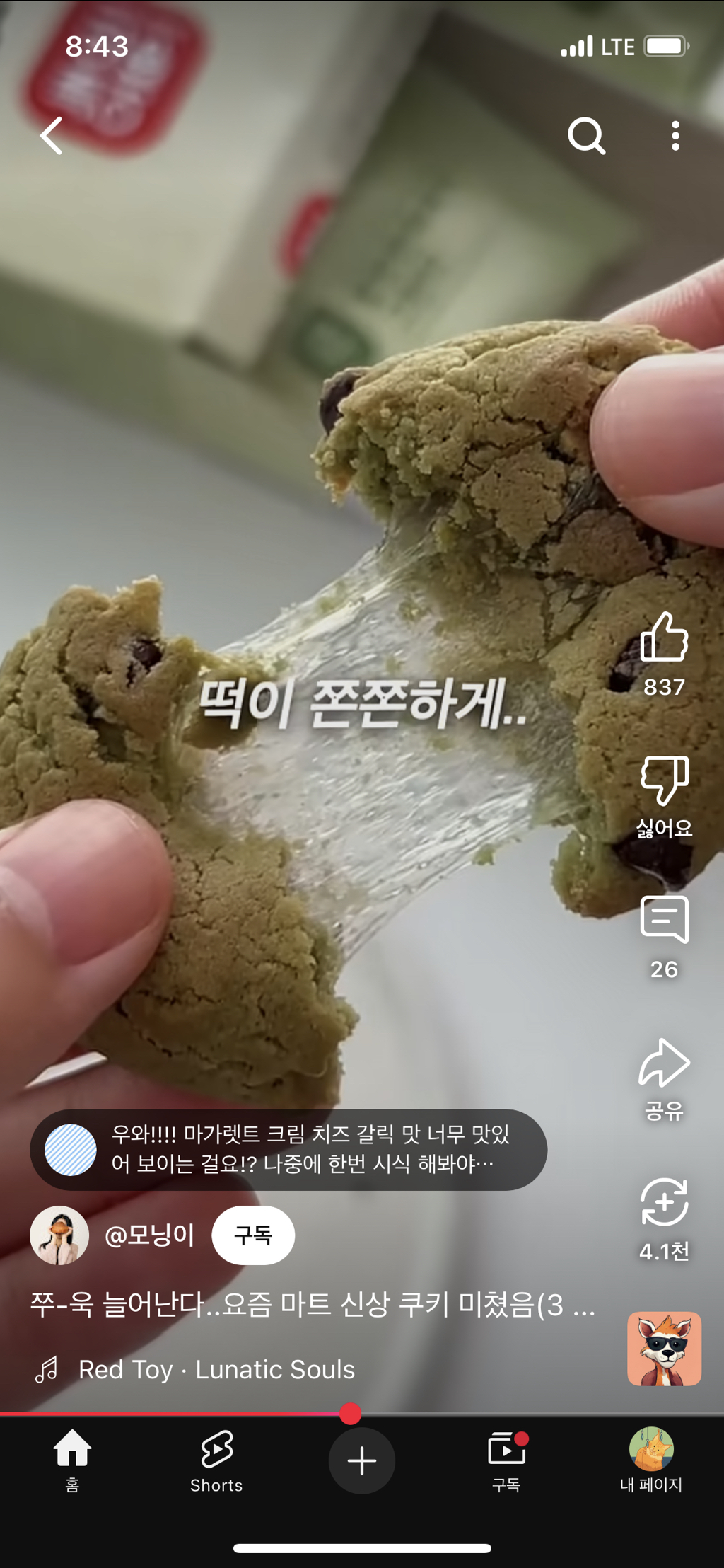 다 필요없고 저 말랑쫀득쿠키 그린티