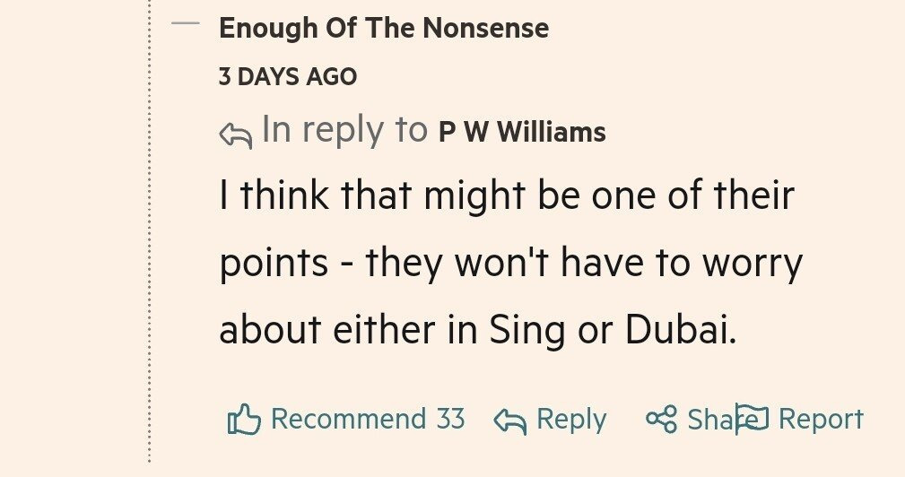 싱가포르나 두바이에선 강력 범죄도 사소한 범죄도 크게 겪을일이 없는데 영국에서 왜 이걸 감내해야하냐는 댓글.