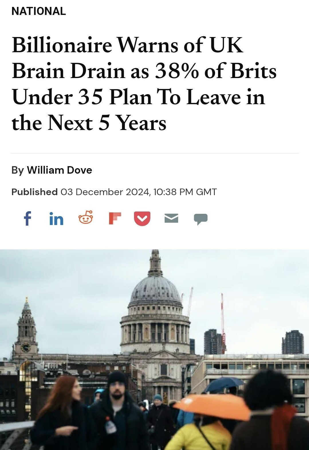 그 결과 영국 35세 이하 청년의 약 40% 가 더 많은 기회와 라이프스타일을 위해 영국을 5년내 떠날려고 하고 있다고 얘기가 나오는중임.