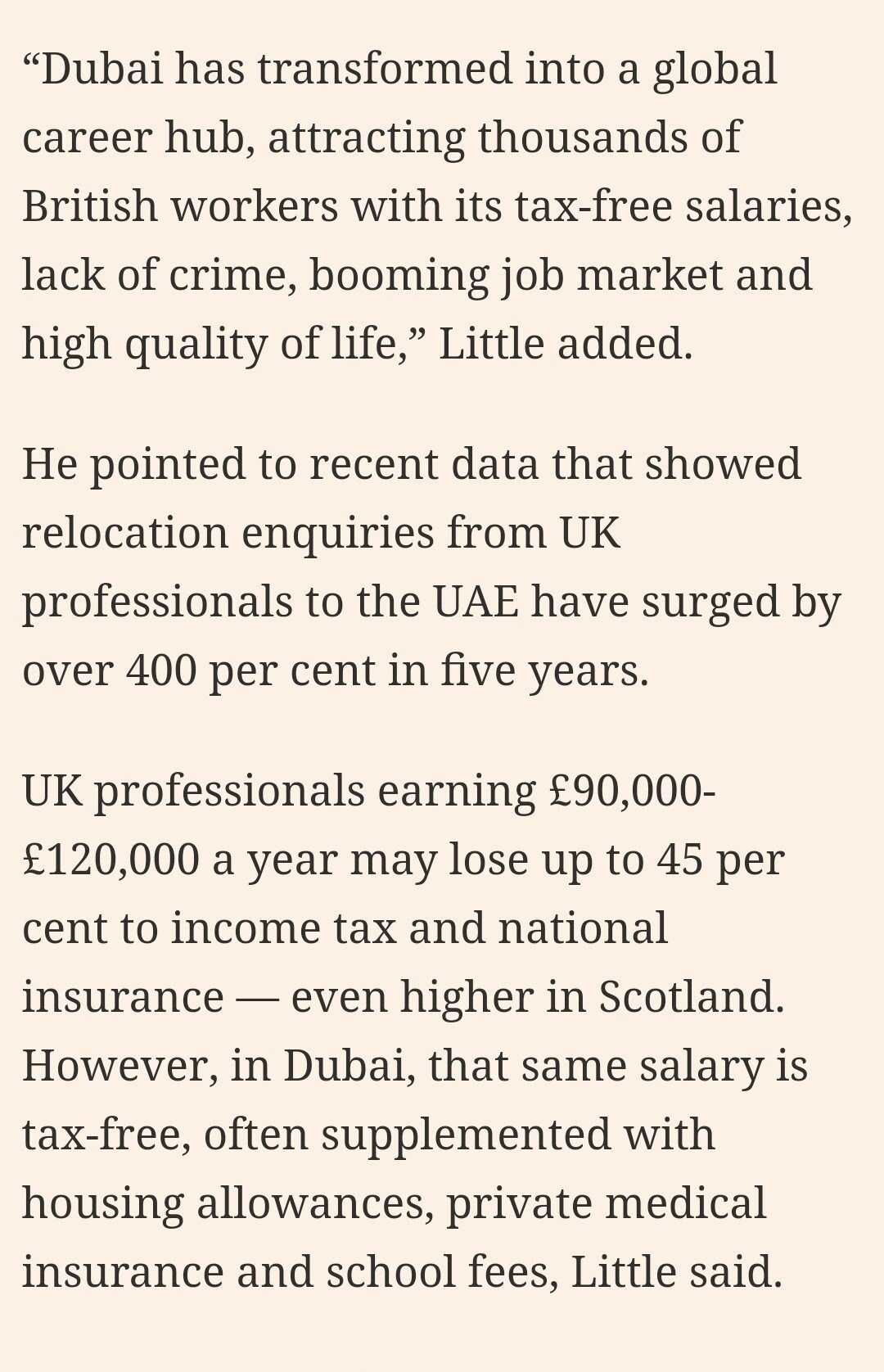실제로 영국 전문직의 두바이 이주 문의는 무려 400% 증가했다고 하는데 이는 영국 전문직은 현재 세전 기준 연봉이 9만파운드에서 12만 파운드 한화로 1억 7000만원에서 2억 3000만원.