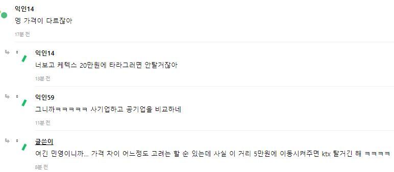 [흥미돋]KTX는 신칸센 보고 좀 배워라 제발 작성자주미사미|작성시간25.11.11|조회수48,290 목록 댓글 201 글자크기 작게가 글자크기 크게가 출처: 여성시대 주미사미 https://instiz.net/name/53738191KTX 특실 사진 다음검색 현재 게시글 추가 기능 열기 북마크 공유하기 신고 센터로 신고 댓글 댓글 201 댓글쓰기 답글쓰기 댓글 리스트 작성자McNasty | 작성시간 25.11.13 ktx 특실 개편하고 넓은디 작성자선수와트레이너 | 작성시간 25.11.13 특실 안 타본 티 좀 내지마 작성자민주주의 대한민국 만세 | 작성시간 25.11.13 ㅅㅂ ktx 운임 14년째 동결이고 코레일 적자인데 어따 비비노 미친일빠색기가 작성자이색 잼 냉장고 | 작성시간 25.11.13 참내 작성자호랑이귀여워 | 작성시간 25.11.22 일빠죽어 댓글 전체보기