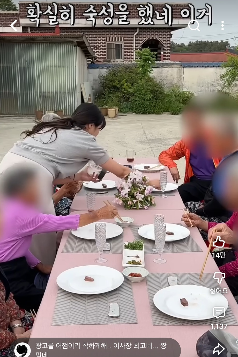 한우 협찬을 받게 된 이사장은 그냥 리뷰를 올리는게 아닌 동네 어르신들을 초대해서 한우 오마카세를 대접함