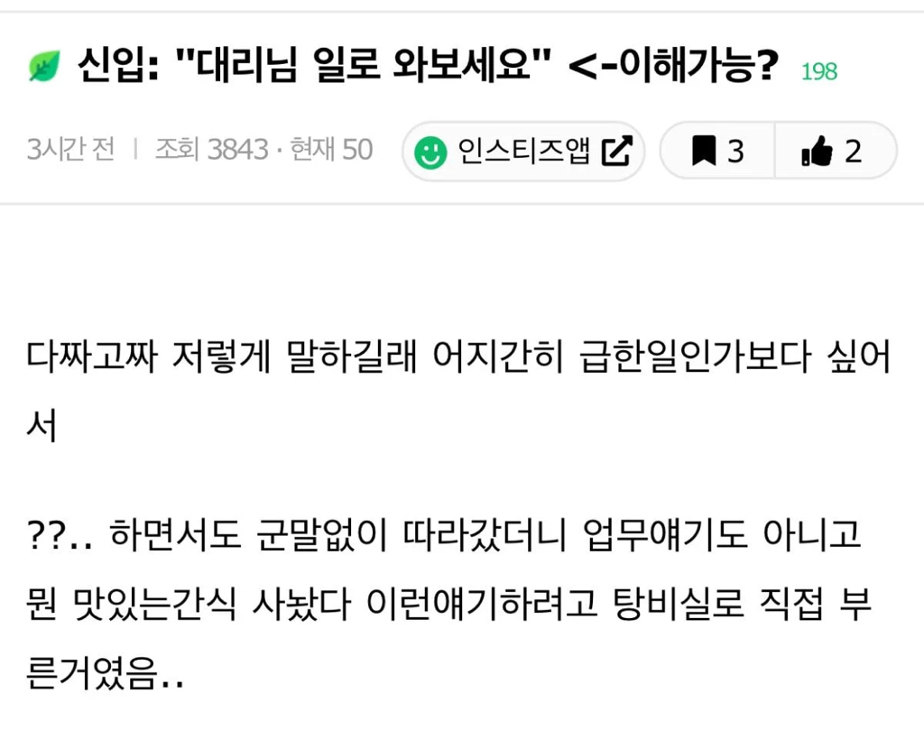 작성자힐러 작성시간 25.11.13 머 어때 대리사원정도면 많이 차이도 안나고 부른 이유도 귀엽잖아 나 생각해서 그런건데? 둥글게 살면 서로좋지