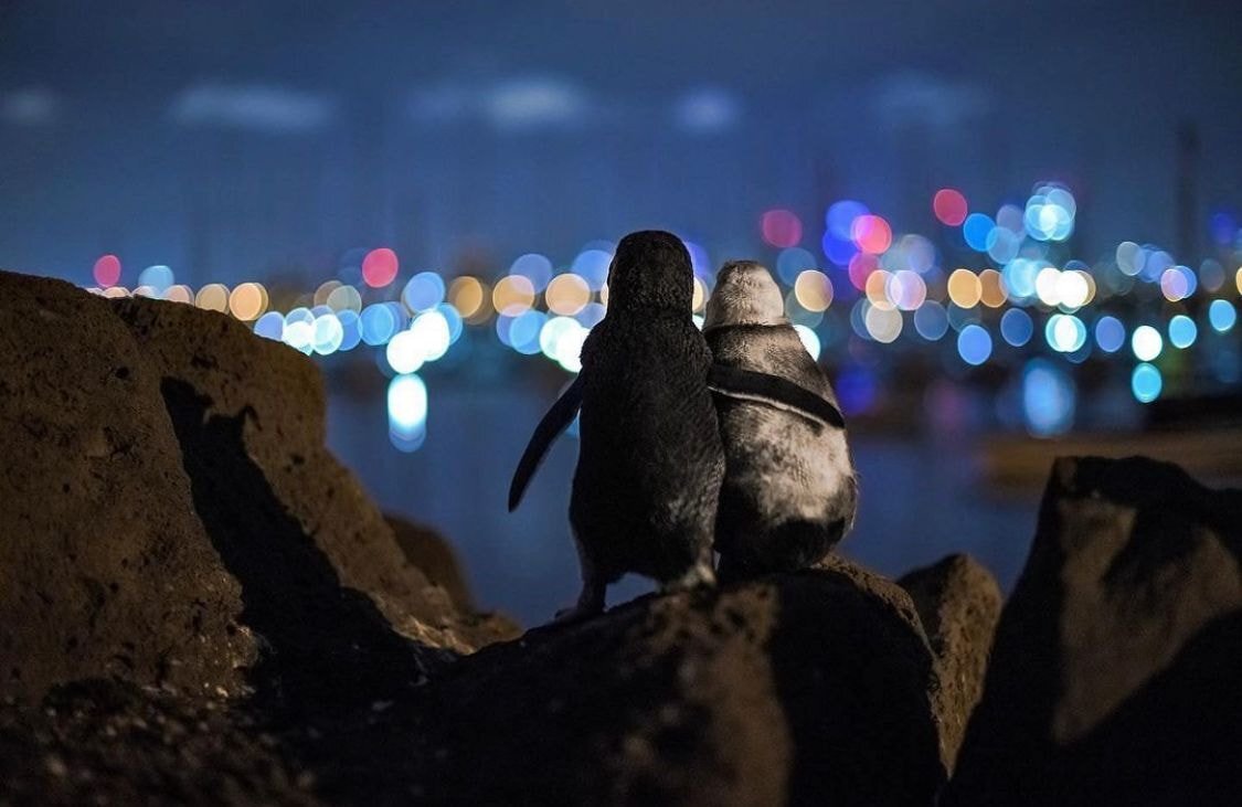 짝을 잃은 펭귄끼리 정기적으로 만나서