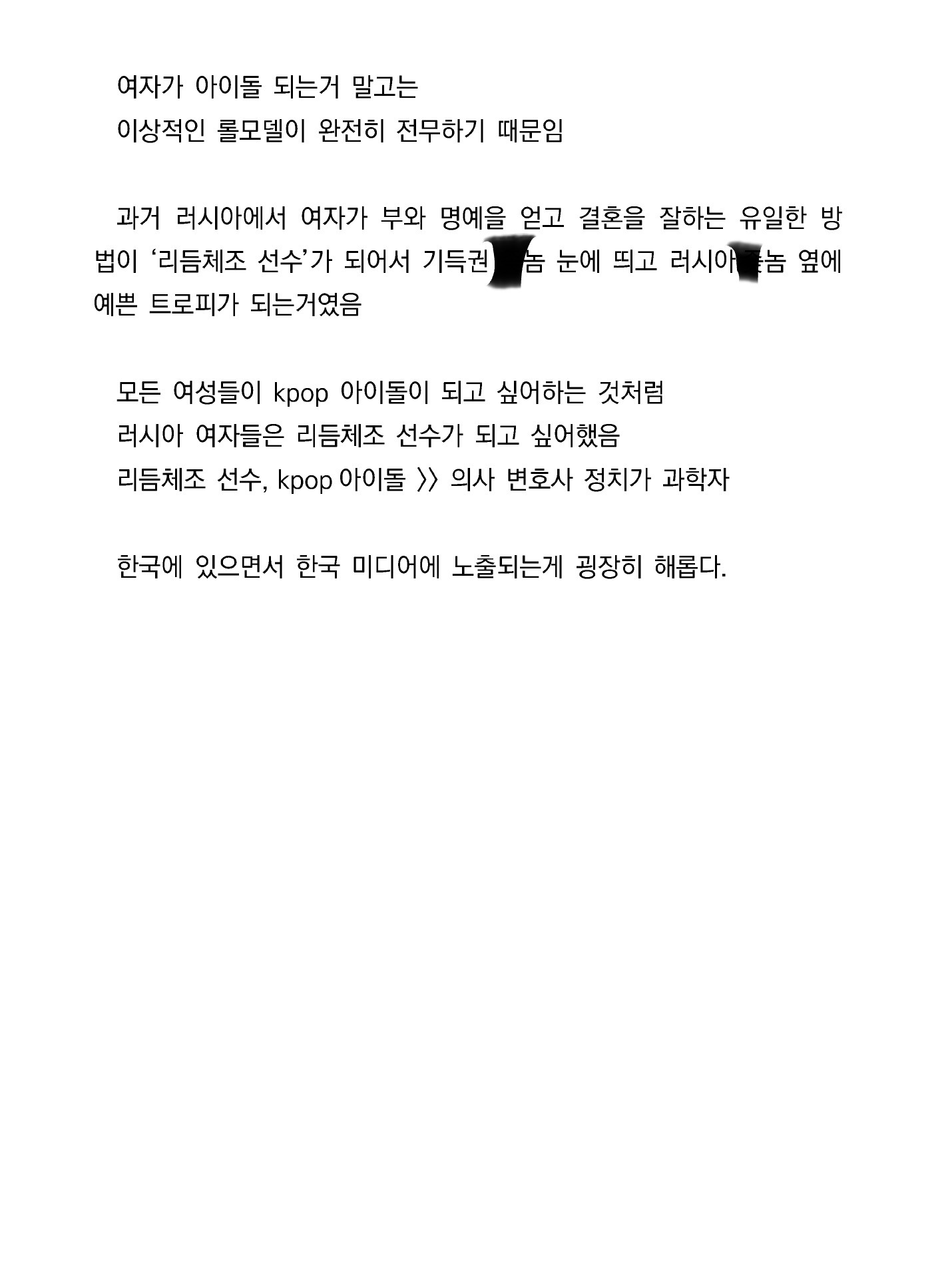 작성자눈치챙기세요 작성시간 25.11.12 한국에 이상적인 여성 롤모델이 없는 건 아님 그들이 빛을 못 받아서 그렇지....