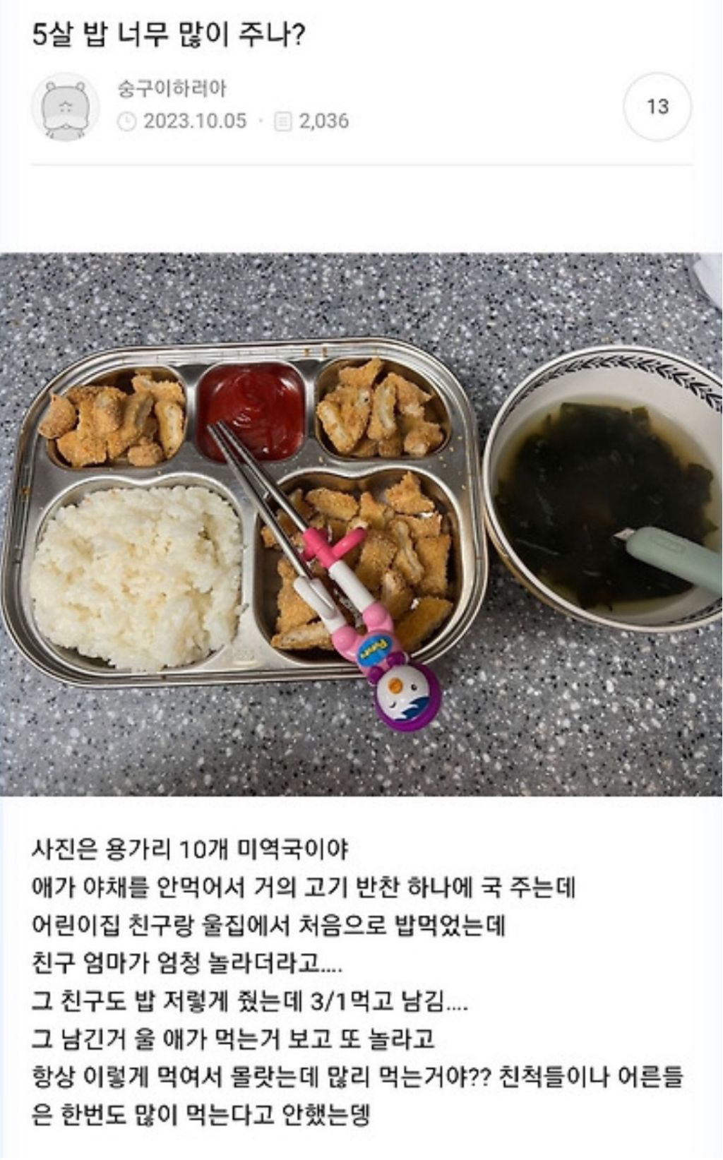 작성자Rock will never die 작성시간 25.11.17 집에서 저렇게 먹이는 것 처럼 밖에서도 밥 가지고 뭐라 하지만 않으면 상관없다고 생각.
