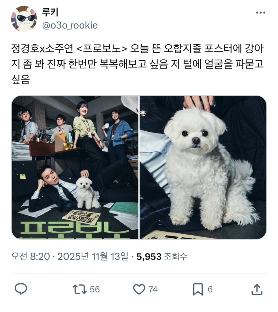[힐링]드라마 포스터에서 시선강탈하는 강아지 작성자은조|작성시간25.11.13|조회수34,680 목록 댓글 17 글자크기 작게가 글자크기 크게가 출처: https://x.com/o3o_rookie/status/1988748748797931740?s=20강아지가 울지도 않고 의젓하네요 다음검색 현재 게시글 추가 기능 열기 북마크 공유하기 신고 센터로 신고 댓글 댓글 17 댓글쓰기 답글쓰기 댓글 리스트 작성자631000이재명 | 작성시간 25.11.13 드라마에 저 강아지나오나???????나오면 보고싶은데 작성자-2kg | 작성시간 25.11.13 너무 얌전해 너무 귀여워 작성자춘식이는 집순이 | 작성시간 25.11.13 사람 누군지 보이지도 않음; 작성자스파게티먹고싶댜 | 작성시간 25.11.13 넘귀엽다 강아지나오는거야? 강쥐헴보고시퍼요 작성자볼케이노감자 | 작성시간 25.11.13 아무래도 강쥐가 센터니까... 댓글 전체보기