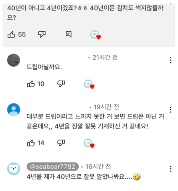 [흥미돋]이거 엄마가 40년된 묵은지 김치래요.jpg 작성자oouh|작성시간25.11.13|조회수77,652 목록 댓글 28 글자크기 작게가 글자크기 크게가 출처: 여성시대 oouh 다음검색 현재 게시글 추가 기능 열기 북마크 공유하기 신고 센터로 신고 댓글 댓글 28 댓글쓰기 답글쓰기 댓글 리스트 작성자클로드 코드 | 작성시간 25.11.13 개웃기다 ㅋㅋㅋㅋㅋㅋㅋ 작성자계절 틈에 잠시 피는 낯선꽃처럼 | 작성시간 25.11.13 씨간장처럼 가능한줄 알았뇌.. 작성자닼앝 | 작성시간 25.11.13 먹고 싶지 않아... 40년까지는... 작성자우짜라고 | 작성시간 25.11.13 말이되노 ㅅㅂ ㅋㅋㅋㅋㅋ 작성자사실뻥이야 | 작성시간 25.11.13 김치라 그럴수도 있겠다 했는데..ㅋㅋㅋㅋ 장은 그렇잖아여..ㅜㅜㅋㅋ 댓글 전체보기