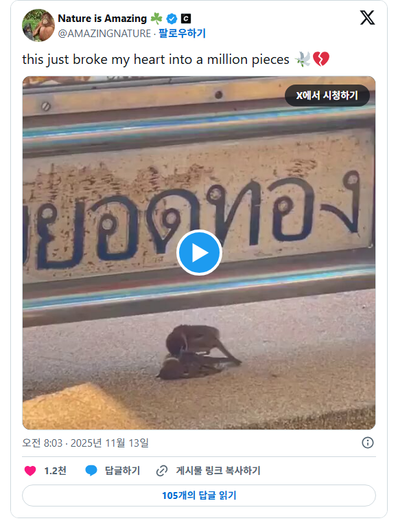 [흥미돋]아마도 죽은 것 같은 친구 참새옆에서 어쩔 줄 몰라하는 참새 작성자딜런댈런|작성시간25.11.13|조회수14,542 목록 댓글 11 글자크기 작게가 글자크기 크게가 출처: https://theqoo.net/square/3989650982 https://x.com/AMAZlNGNATURE/status/1988744414823330101?s=20 ㅠㅠㅠ 다음검색 현재 게시글 추가 기능 열기 북마크 공유하기 신고 센터로 신고 댓글 댓글 11 댓글쓰기 답글쓰기 댓글 리스트 작성자Caps Lock | 작성시간 25.11.13 맘아프다..ㅠㅠ 작성자6개월에이천만원 | 작성시간 25.11.13 아직도 기억나는데 중딩 때 학원에서 수업받는데 진짜 말도 안 되게 새들이 쩌렁쩌렁 우는거야 그냥 시끄럽네..하고 학원 끝나고 나왔는데 학원앞에 가로수 밑에 새 죽어있고 그 가로수에 새들 앉아있었음 ㅜㅜ 작성자예준이 효자되세요 | 작성시간 25.11.13 ㅠㅠ 작성자암국 | 작성시간 25.11.13 ㅜㅜㅜ... 작성자이것뭐에요?? | 작성시간 25.11.13 맘아프네.. 댓글 전체보기