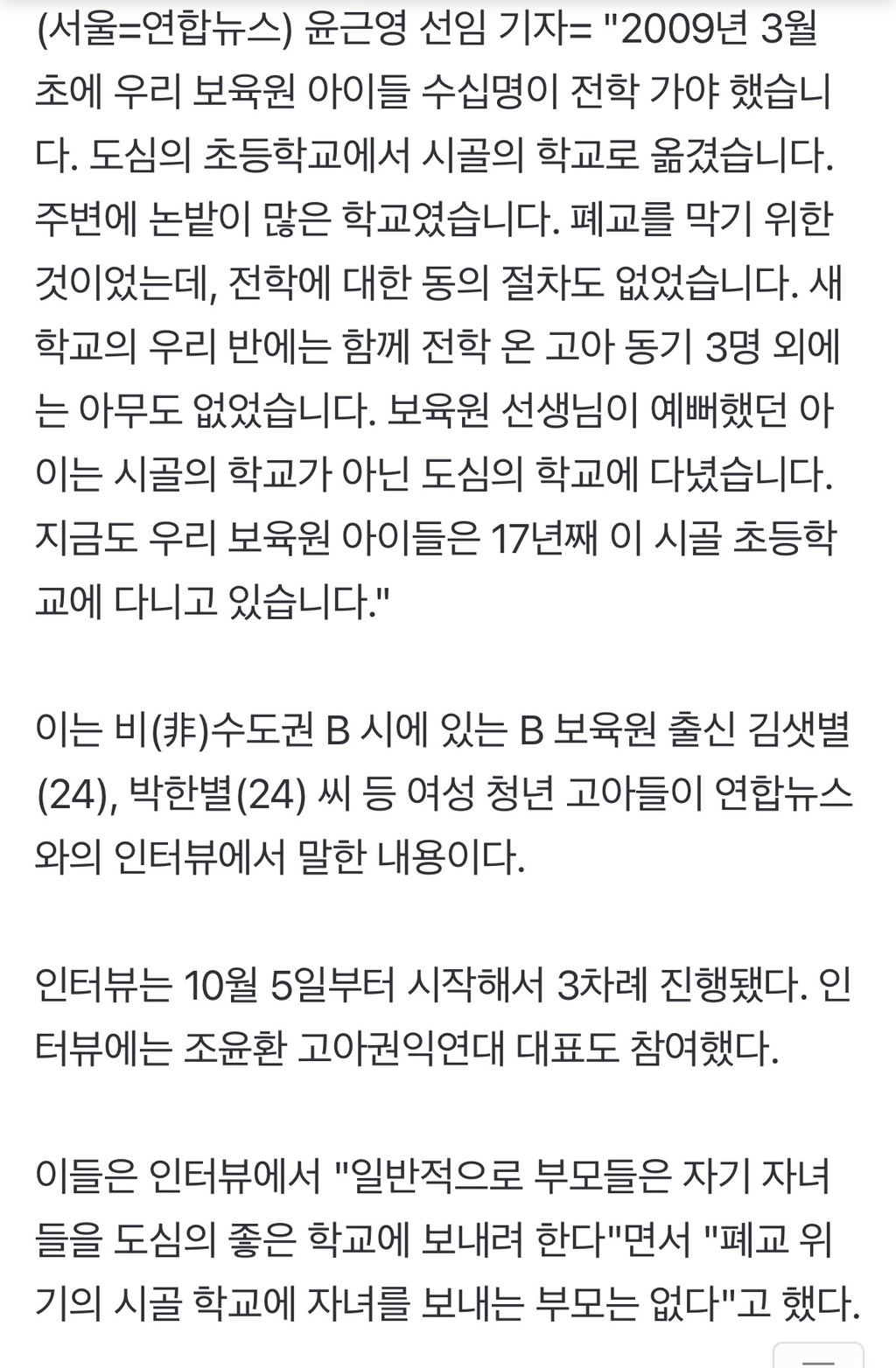 폐교를 막는데 아이들의 의사 존중은 없었음
