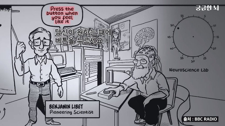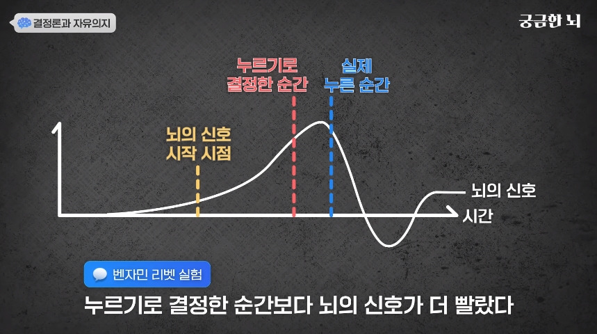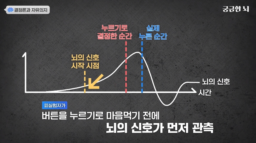 결론은 미리 관측된 뇌파라도 자유 의지가 맞다고 본다로 끝났지만 너무 신기한 실험이라 캡쳐해와봄