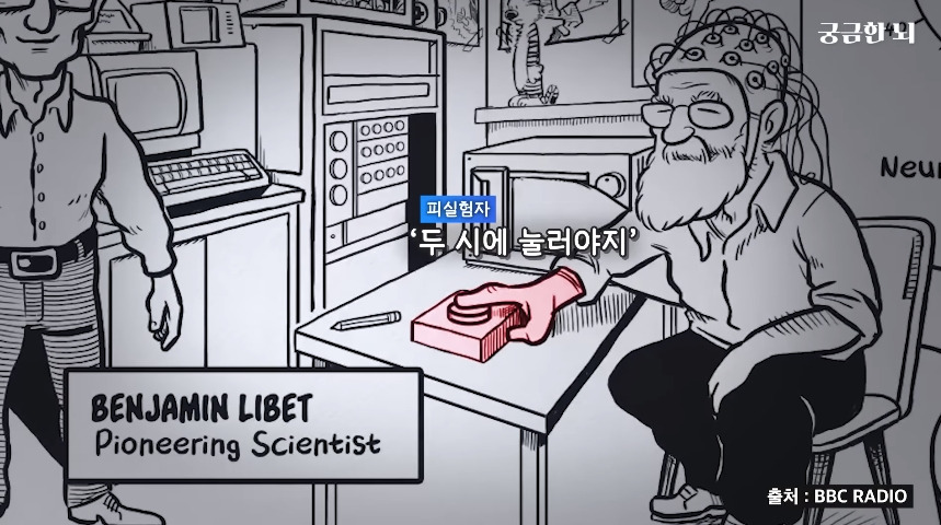 피실험자가 2시에 버튼을 눌렀다면 놀랍게도 30분 전인 1시 30분에 그 결정을 미리 뇌파의 상태로 알 수 있었음