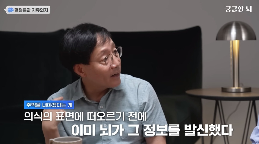답댓글 작성자자몽에읻으 작성시간 25.11.14 2시에 눌러야지라고 1시 40분에 생각했는데(했다고 사람은 생각했는데) 뇌파를 관측했을때 그 생각은 이미 1시 30분에 들었다는 얘긴듯