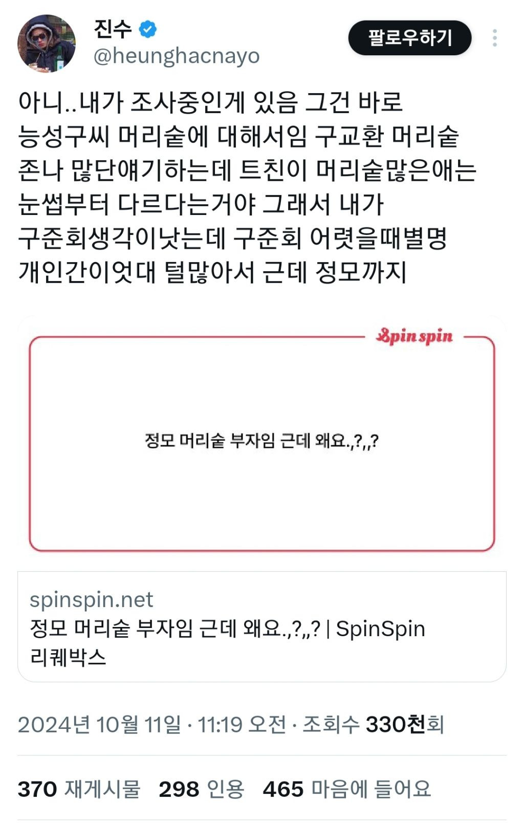 그리고 진수의 능성구씨 관련 트윗 하나 더