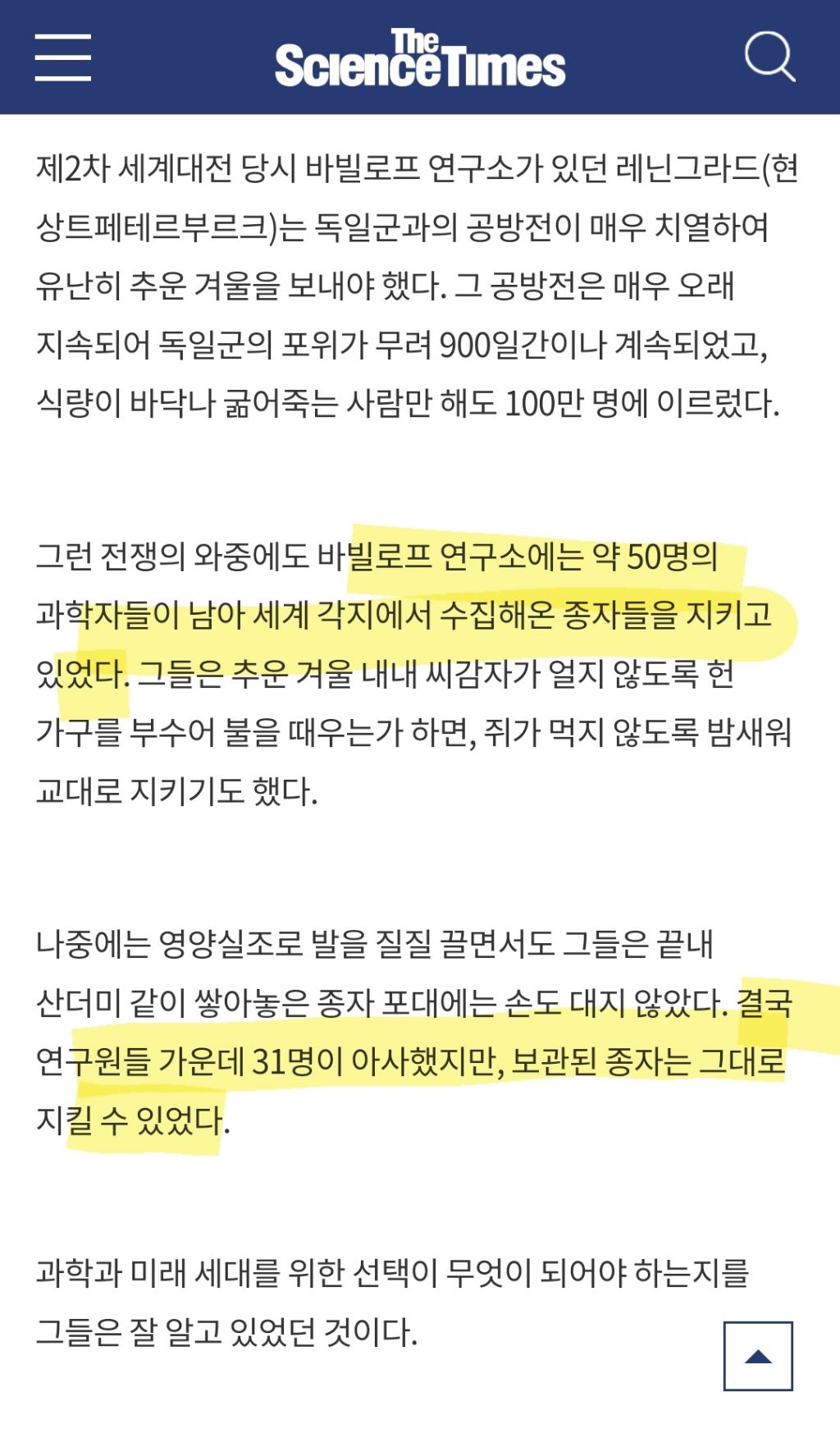 바빌로프 연구소의 아사사건이 궁금해서 찾아봄