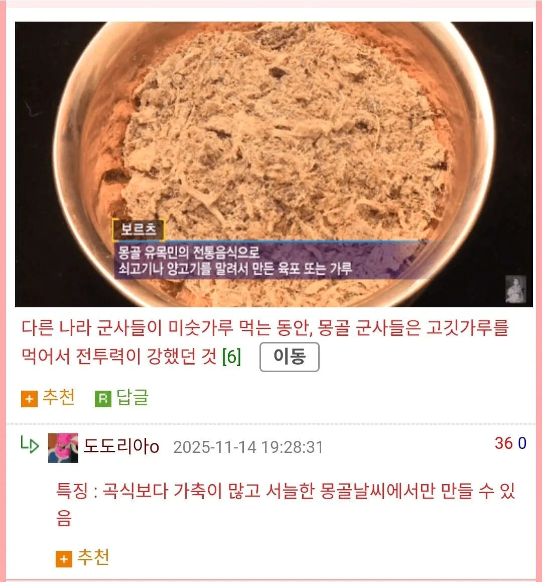 [스크랩] [흥미돋]중세 동아시아 군대의 비상식량 작성자flflf|작성시간25.11.15|조회수4,154 목록 댓글 4 글자크기 작게가 글자크기 크게가 다음검색 스크랩 원문 : 이종격투기 현재 게시글 추가 기능 열기 북마크 공유하기 신고 센터로 신고 댓글 댓글 4 댓글쓰기 답글쓰기 댓글 리스트 작성자우가갸 | 작성시간 25.11.15 미숫가루가 전투식량이었다니... 작성자팟럭파티 | 작성시간 25.11.15 미숫가루...? 헐..완전 도라이들이죠 그 글 생각나네 작성자풍성충 | 작성시간 25.11.15 그래서 살이 쪘나.. 작성자칰킨추천받아 | 작성시간 25.11.15 그래서 미숫가루 먹으면 살 겁나 찌나보다… 존맛 댓글 전체보기