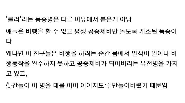 이렇게 태어난 뒤틀린 둘기들은 대부분 비둘기 콘테스트에 출품하려고 만드는 장식용도