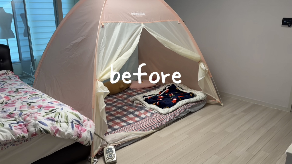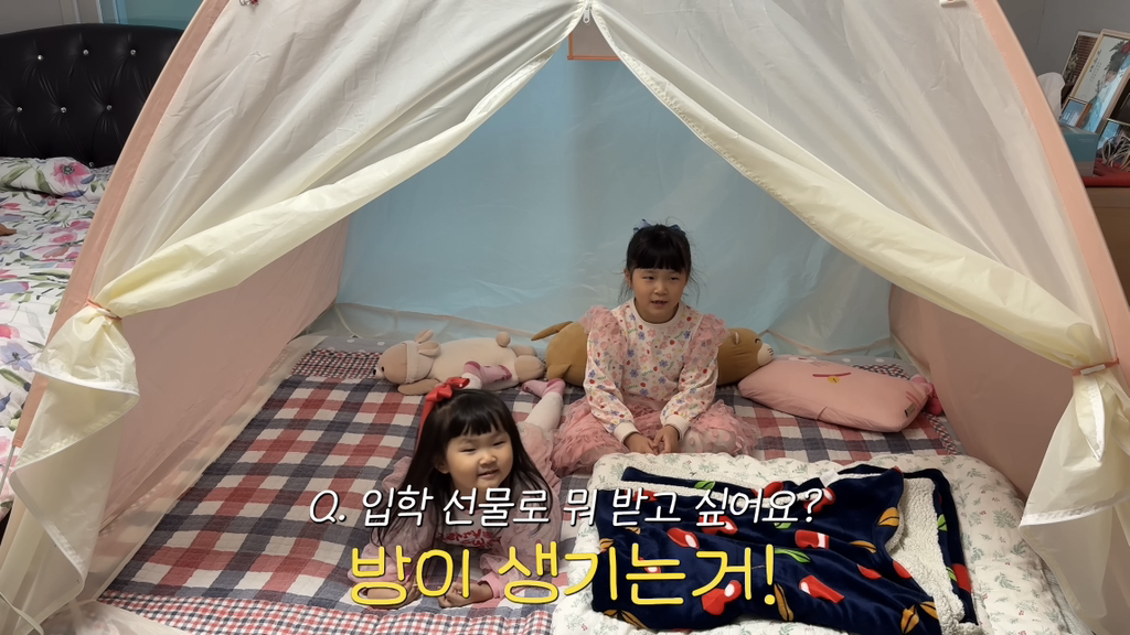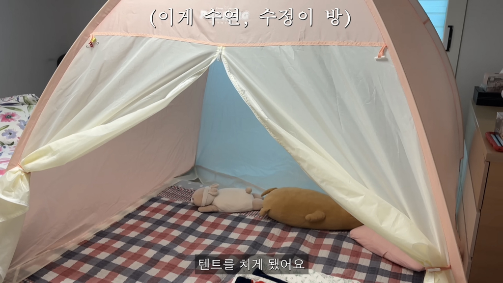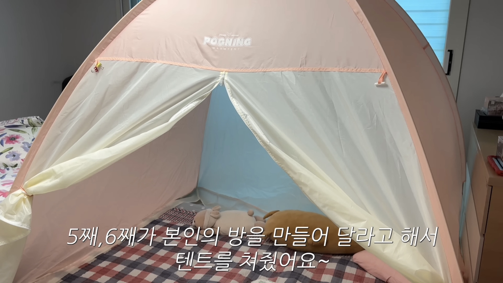 곧 초등학교 가는 아이가 자기 방이 갖고 싶다고 방 안에 텐트를 치고 지낸다고ㅠ