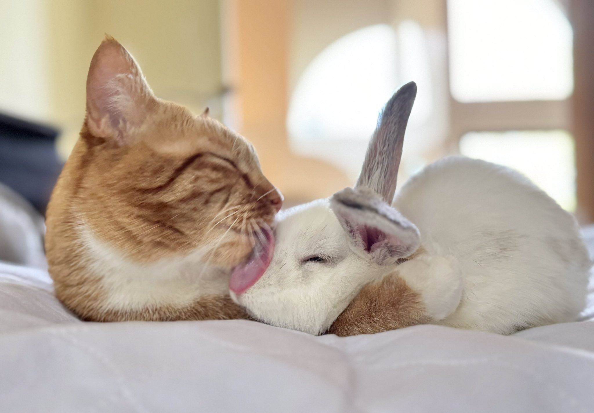 夜야更경け、猫묘がベッドに横횡になると10秒초以이内내にウサが嬉희々として登등場장する。 pic.twitter.com/KbAtVj4QVG