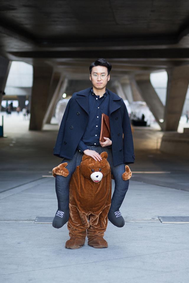 “우리 집 곰이랑 같이 놀러 나왔어요.”