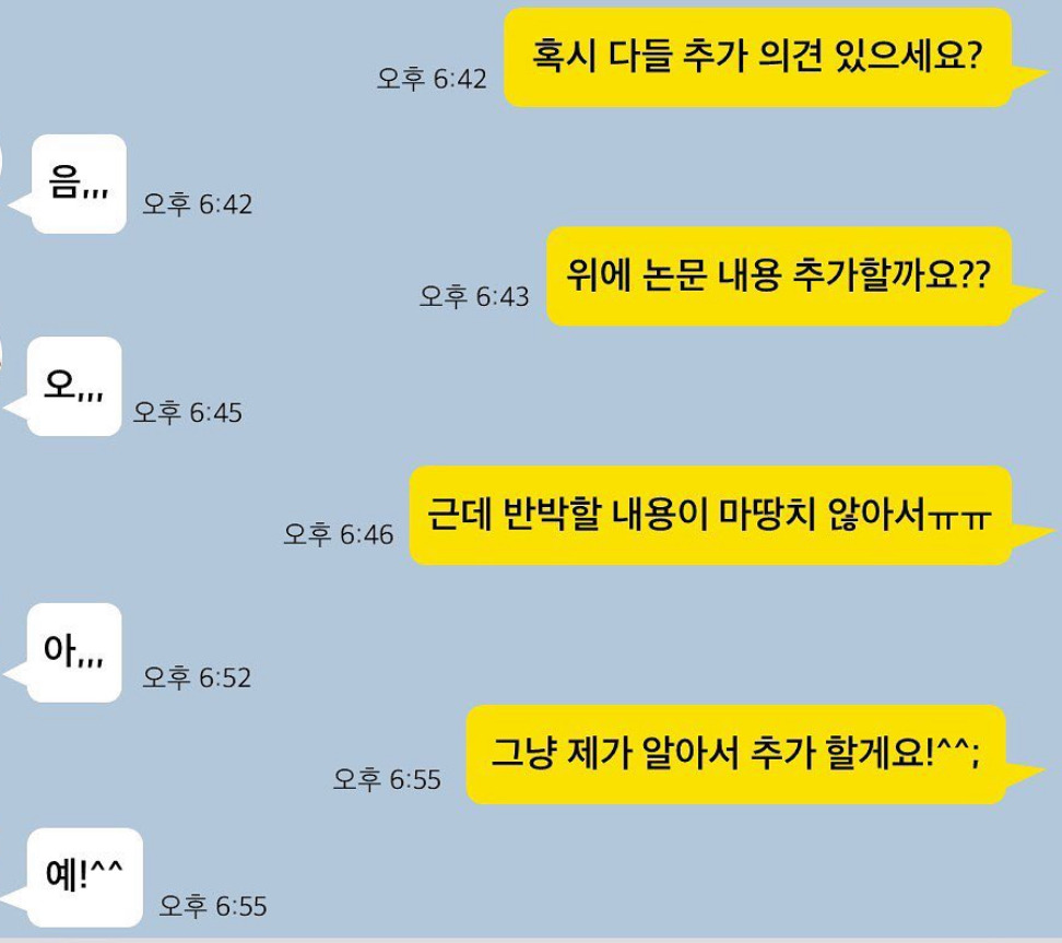 → “이거 왜 이렇게 하셨어요?” “그냥요…”