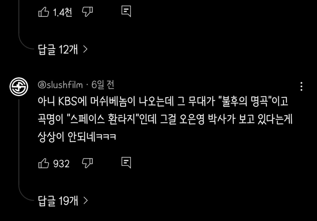 작성자curens 작성시간 25.11.16 이박사는 시대가 재평가할거라는 말이 딱이네 이건 딴말이긴 한데 머쉬베놈 공연 진짜 잘하더라 라이브 개잘해 ㅋㅋㅋㅋㅋㅋㅋ