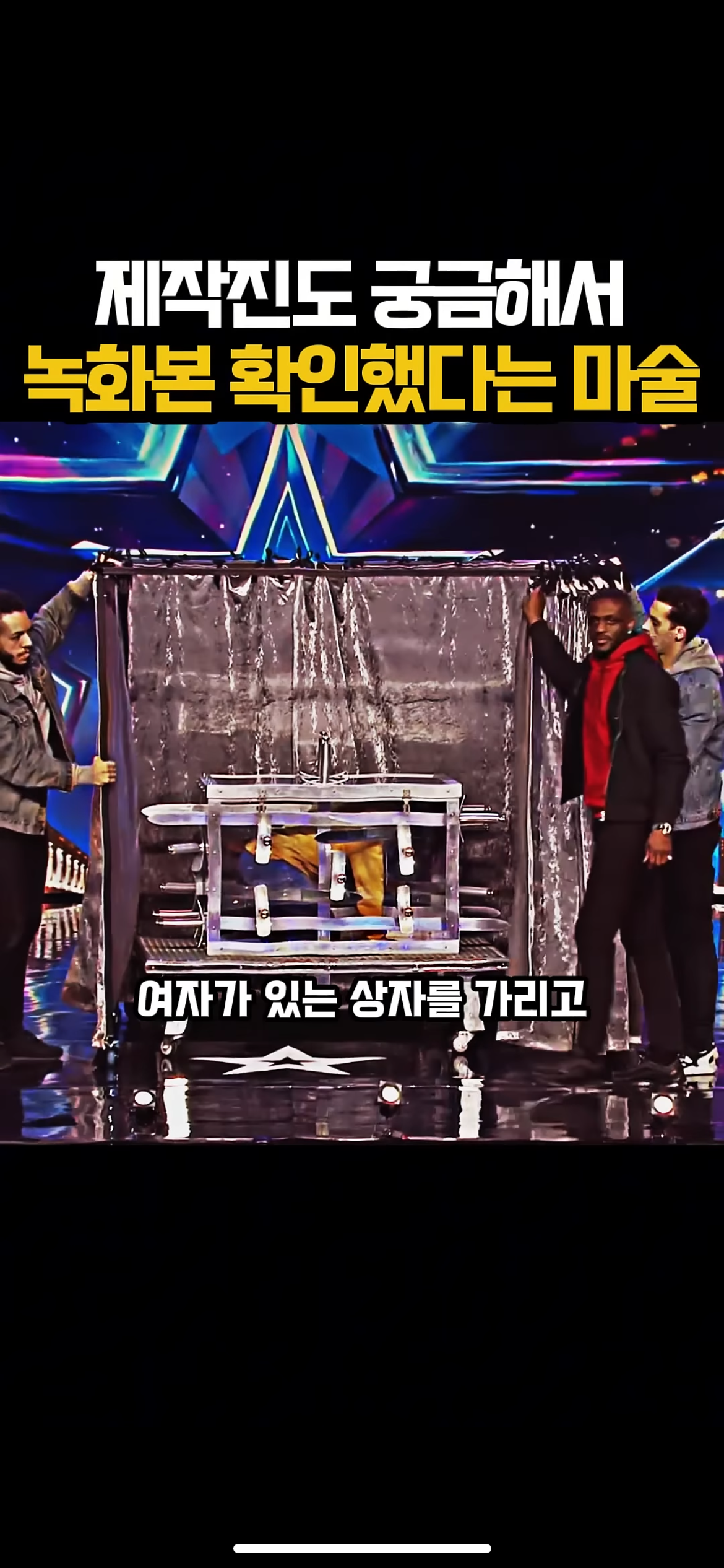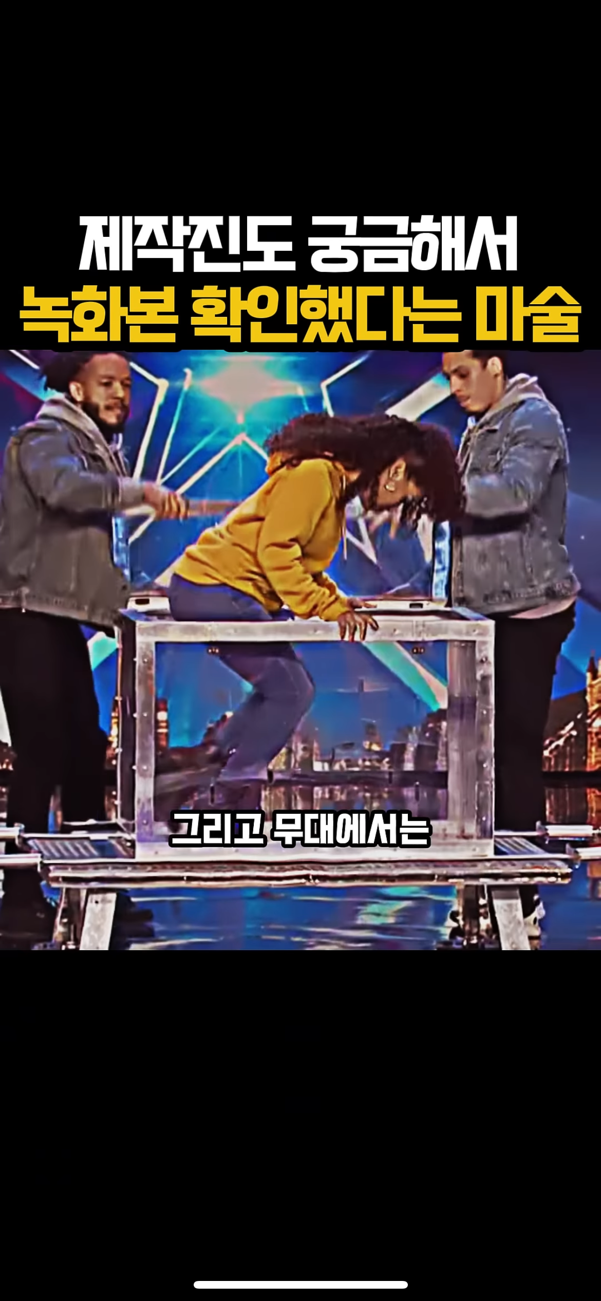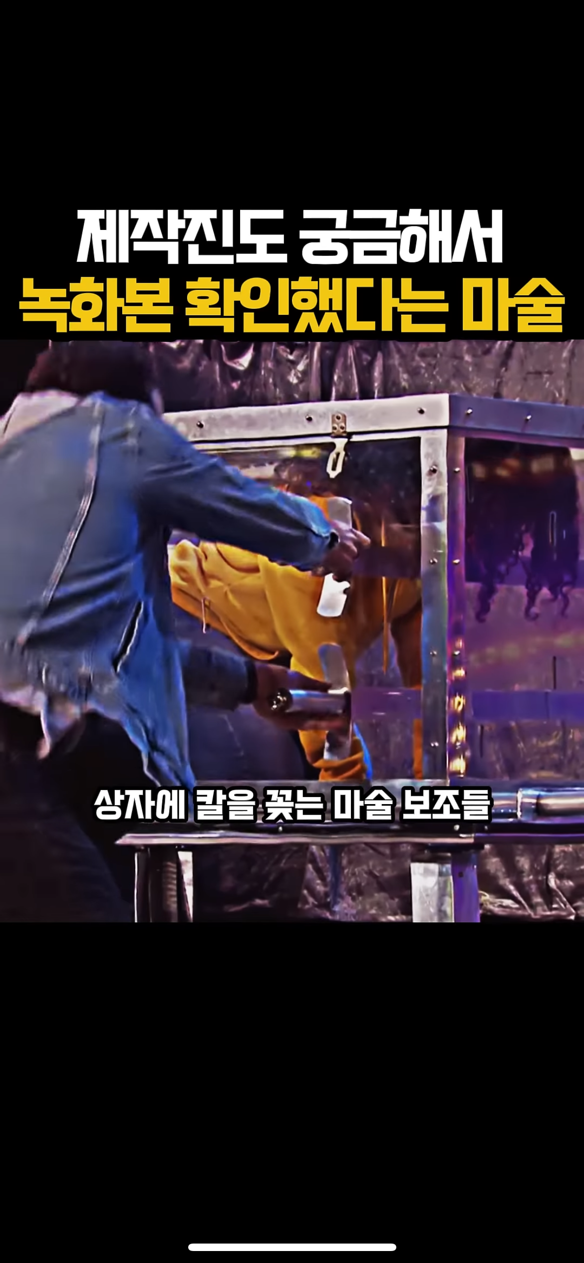 그리고 무대 위에서는 조수2가 노란 후드를 입고선 상자에 들어감