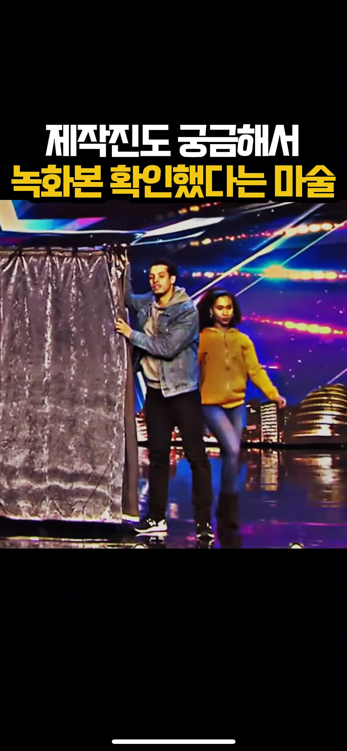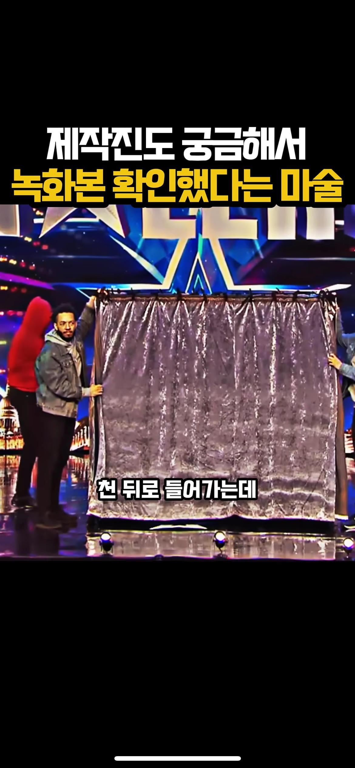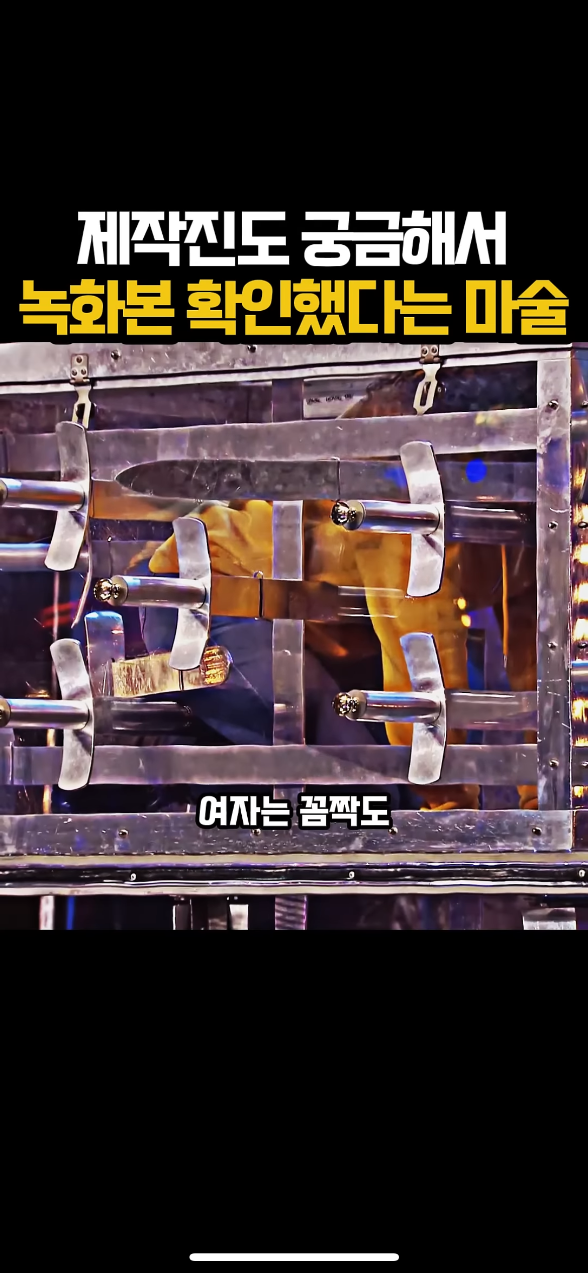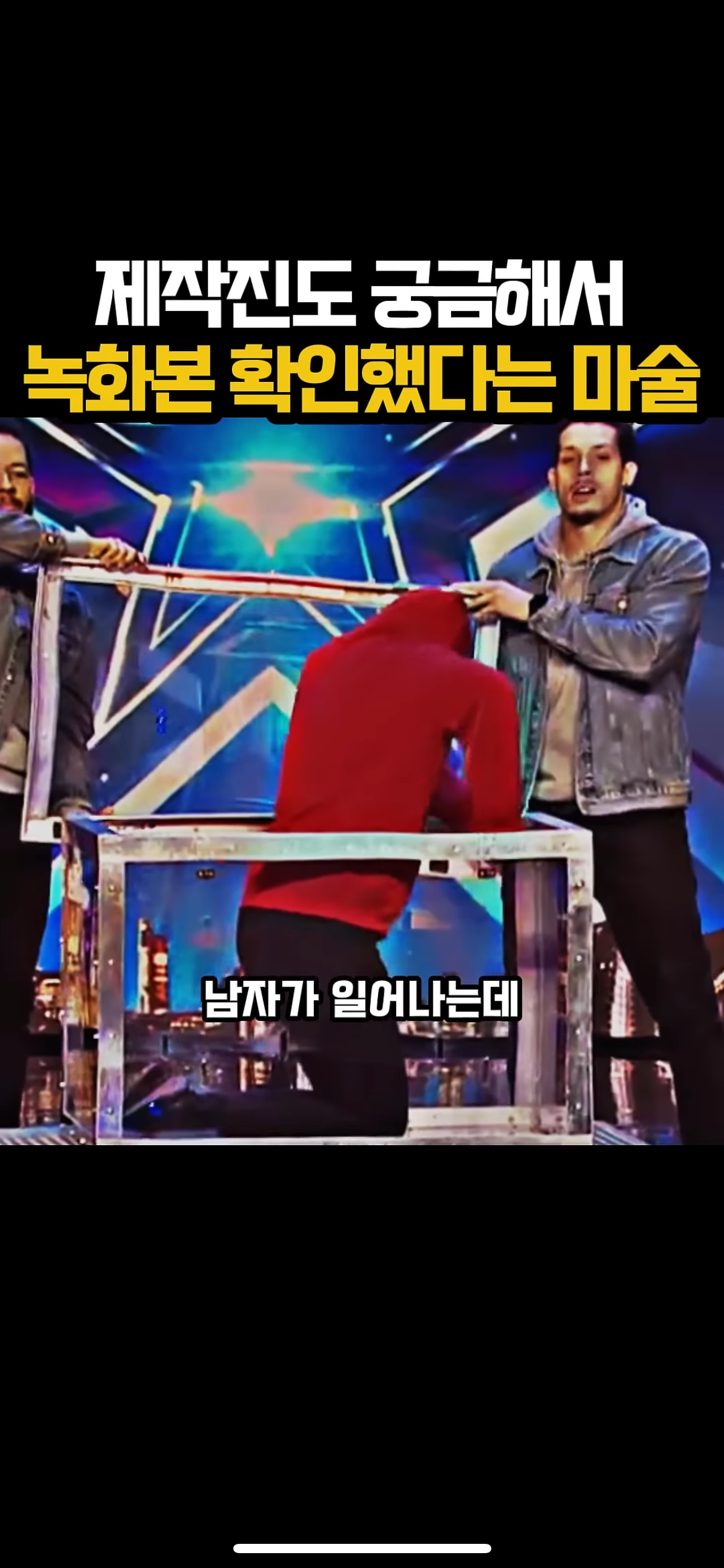 그리고 무대 위에서는 조수2가 노란 후드를 입고선 상자에 들어감
