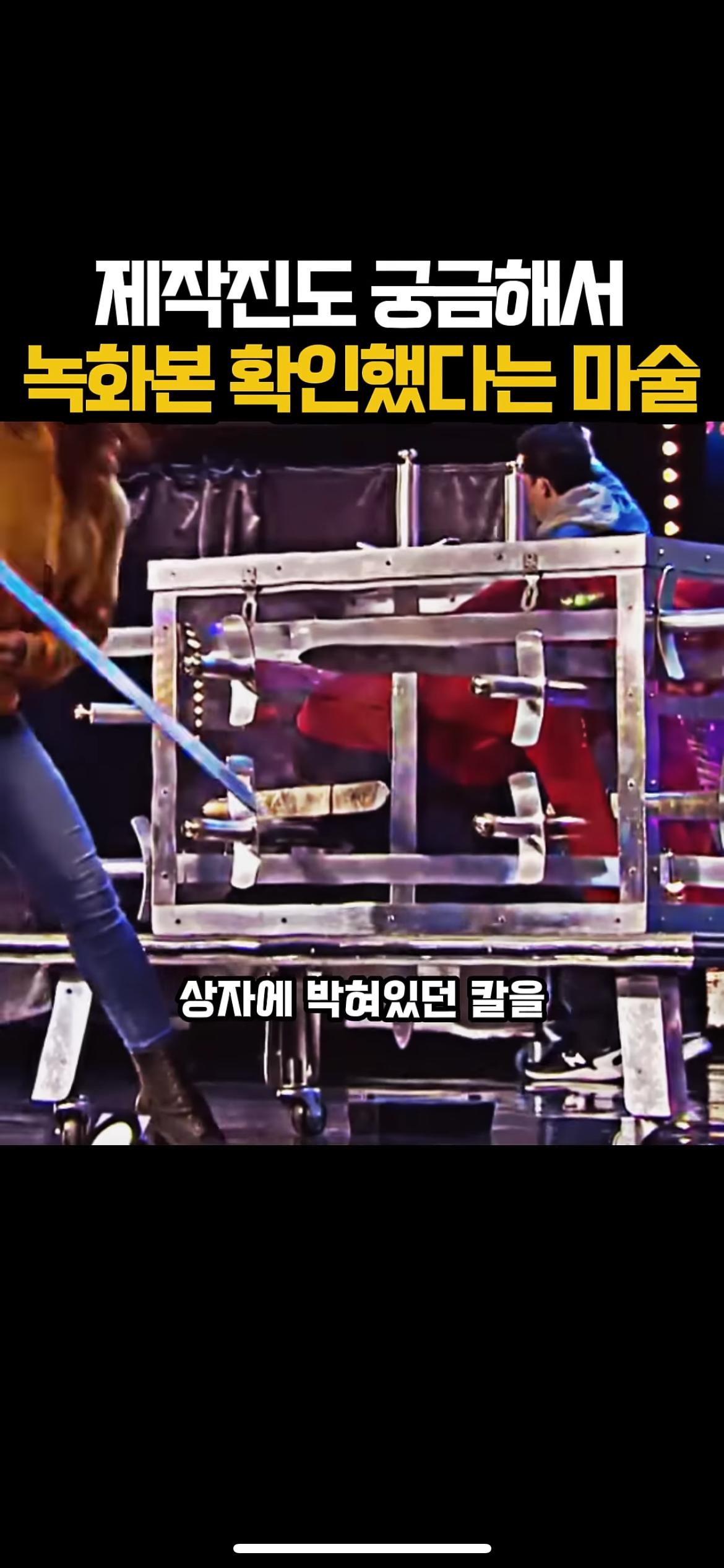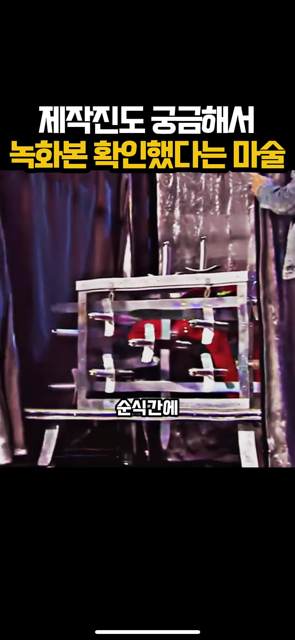 상자 속 조수2가 움직이지 못하게 다방면으로 칼을 꽂아주고