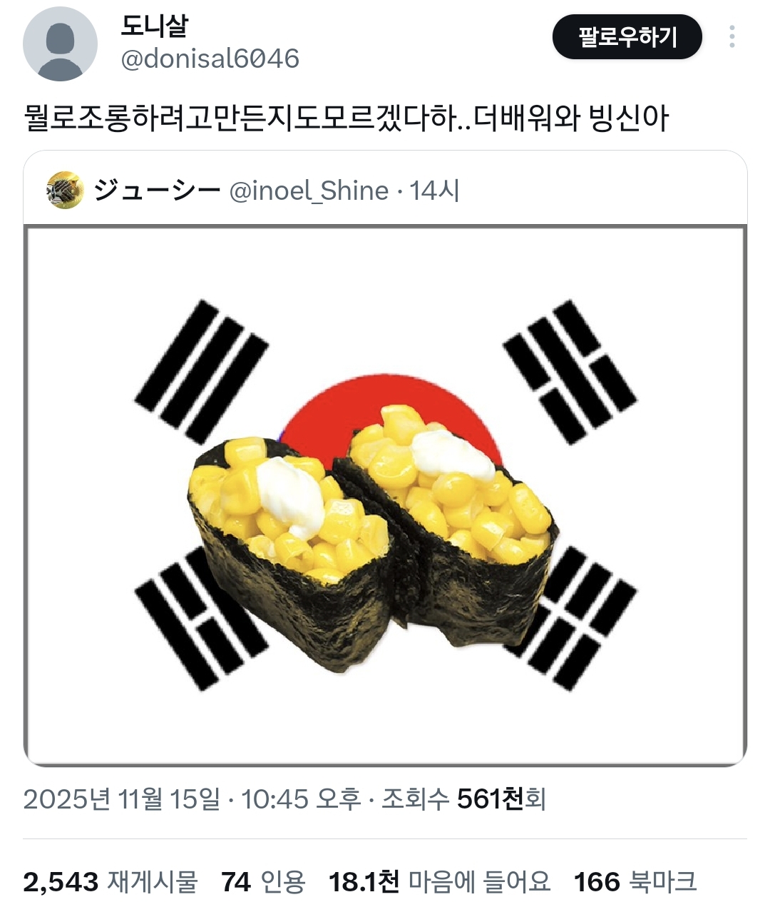 인용 보니까 뭐 군함도 얘기를 군함초밥으로 엮어서 만든 드립짤 같다는데
