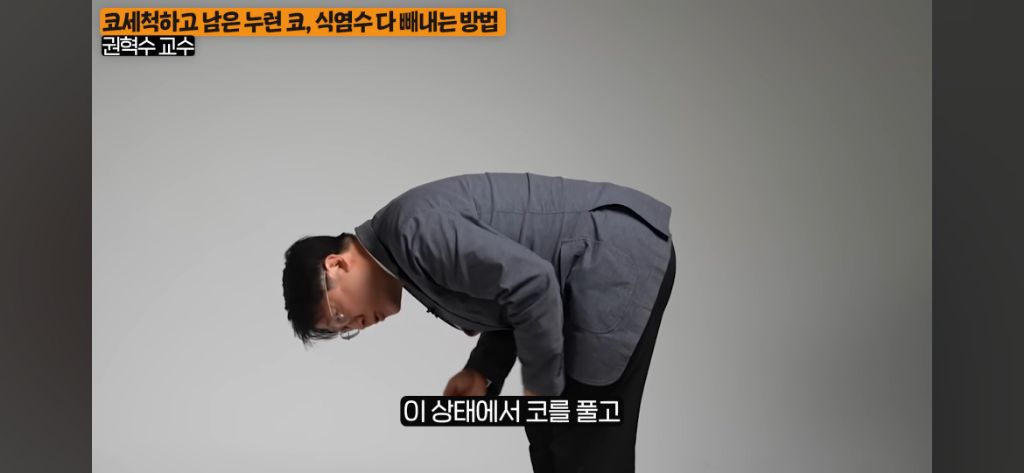 그냥 서서 풀기보다 고개를 숙여서 코풀면 더 좋대