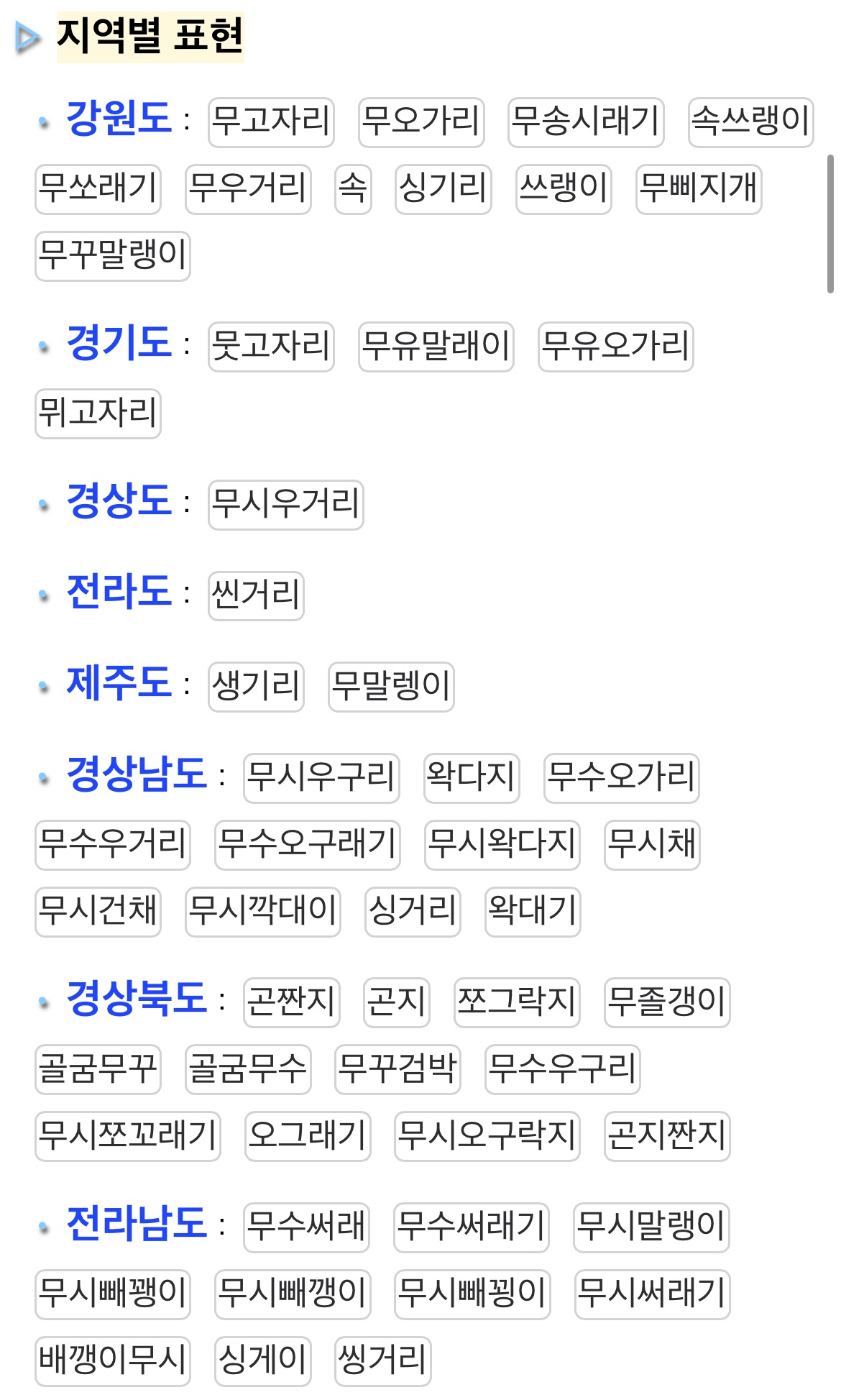 [스크랩] [흥미돋]지역마다 부르는 이름이 다른 반찬 작성자이재는이재명|작성시간25.11.16|조회수9,669 목록 댓글 22 글자크기 작게가 글자크기 크게가 출처 : 여성시대 열빙어무말랭이오그락지골금짠지생기리무고시래기등등개많음… 다음검색 스크랩 원문 : *여성시대* 차분한 20대들의 알흠다운 공간 현재 게시글 추가 기능 열기 북마크 공유하기 신고 센터로 신고 댓글 댓글 22 댓글쓰기 답글쓰기 댓글 리스트 작성자클리어타이 | 작성시간 25.11.16 오구락지 작성자하이마마 | 작성시간 25.11.16 엄마가 생기리무침이라 그러면 난 맨날 그게 뭔데..?를 맡음 작성자모델 | 작성시간 25.11.16 서울 무말랭이다른거 다첨들어봐 ㄷ ㄷ 작성자Jin Yun | 작성시간 25.11.17 무말랭이 작성자istj잇티제 | 작성시간 25.11.17 오그락지 댓글 전체보기