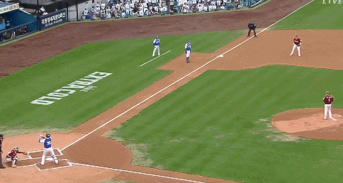 3루수 가슴으로막고! 가까운 베이스를 찍으면서!