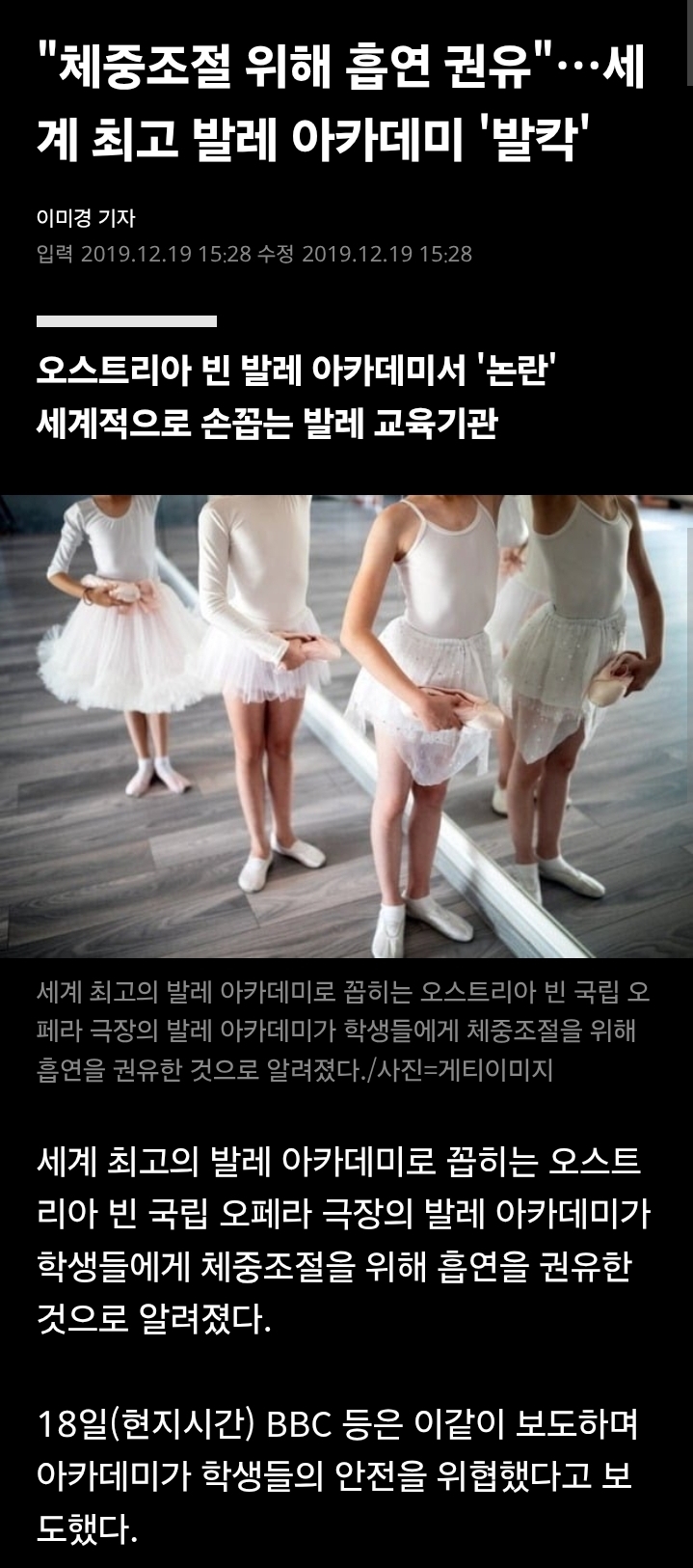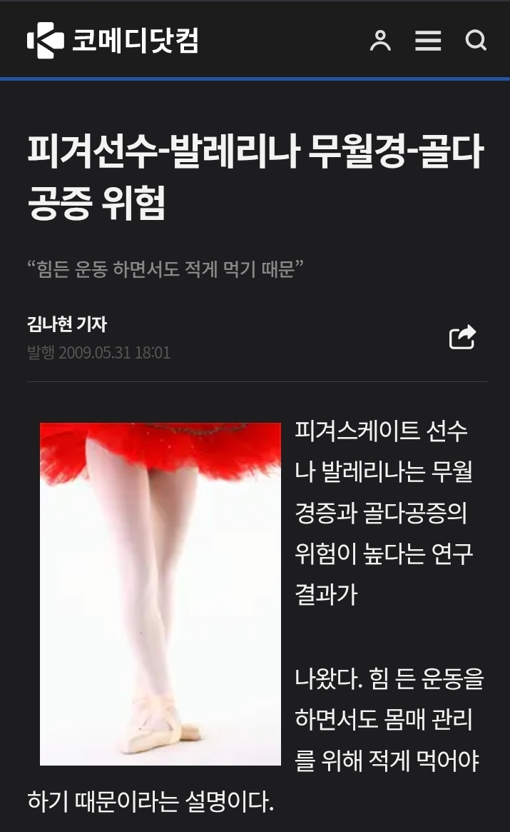 작성자Kitten 작성시간 25.11.16 발레는 예술이라면서 아름답게 보이기 위해서는 체중감량 당연하다고 하는 사람들 이런 글은 이 악물고 모른 척 함ㅋㅋㅋㅋ