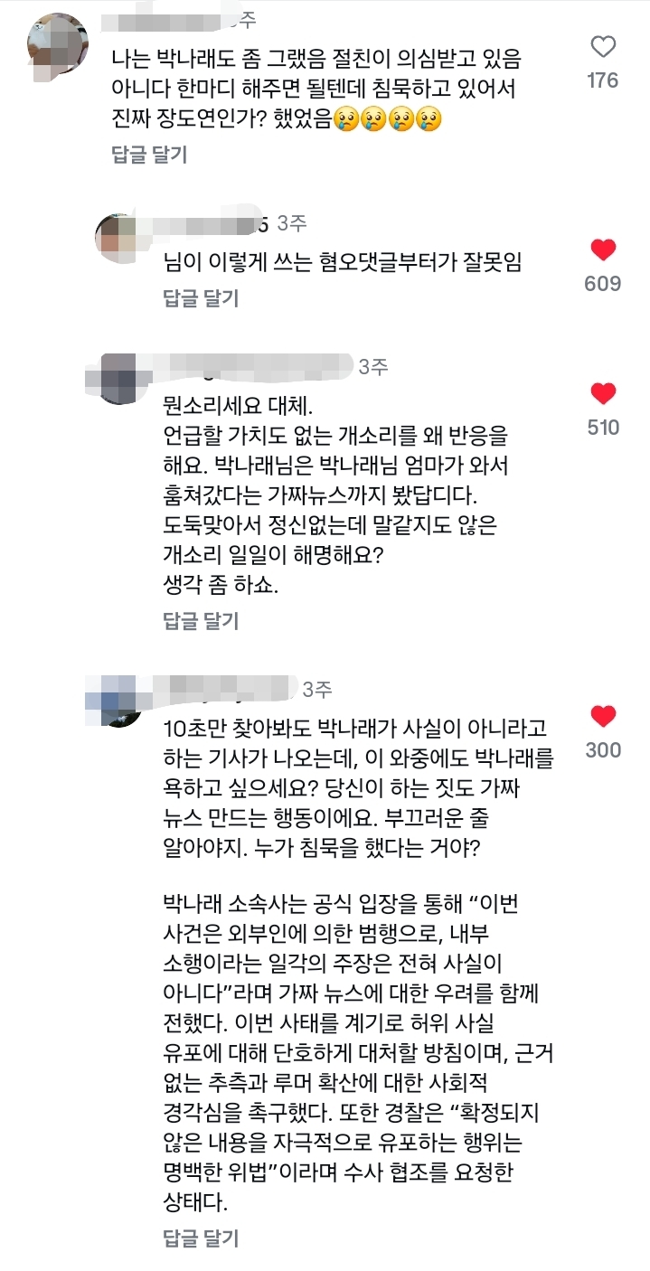 댓글에서는 왜 박나래가 아니라고 안했냐고