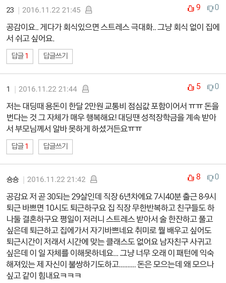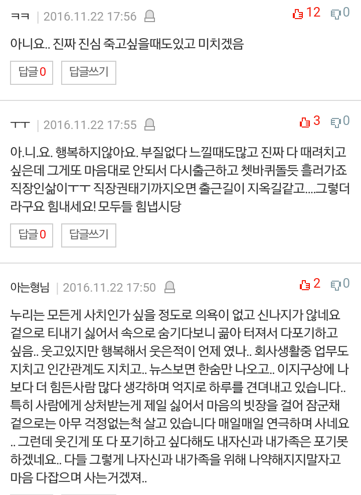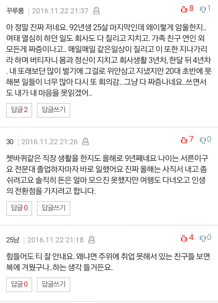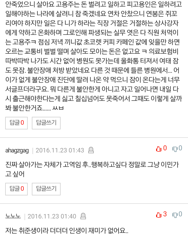 [스크랩] [흥미돋]직장인으로 산다는것 작성자돌연사 박물관|작성시간25.11.16|조회수12,207 목록 댓글 37 글자크기 작게가 글자크기 크게가 출처 네이트판 다음검색 스크랩 원문 : 쭉빵카페 현재 게시글 추가 기능 열기 북마크 공유하기 신고 센터로 신고 댓글 댓글 37 댓글쓰기 답글쓰기 댓글 리스트 작성자나랑드그린애플 | 작성시간 25.11.17 노동시간을 줄여야돼.. 작성자귀요미여시♡ | 작성시간 25.11.17 주4일제 해야돼.. 작성자douglas jewell | 작성시간 25.11.17 그냥 다 죽이고싶어 작성자zutomayo | 작성시간 25.11.17 힘들어 진짜 앞으로 몇십년은 이러고 살아야한다니 막막하다 작성자앤믹스 설윤 | 작성시간 25.11.17 진짜.. 딱히 힘든 일은 없는데 일하다 죽으려 태어났나싶음 댓글 전체보기
