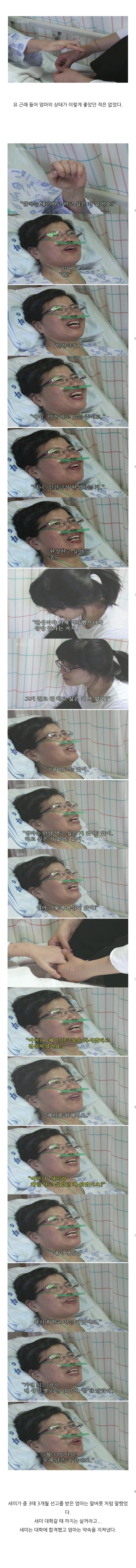 작성자antifreeze 작성시간 25.11.17 항상이런다큐를보면 꼭 촬영중에 상태가갑자기 좋아져서 다들 신나하다가 다음날부터 악화돼서 돌아가시고.. ㅠㅠㅠㅠㅠ 진짜 그 신나하는게담겨서너무너무슬퍼짐..