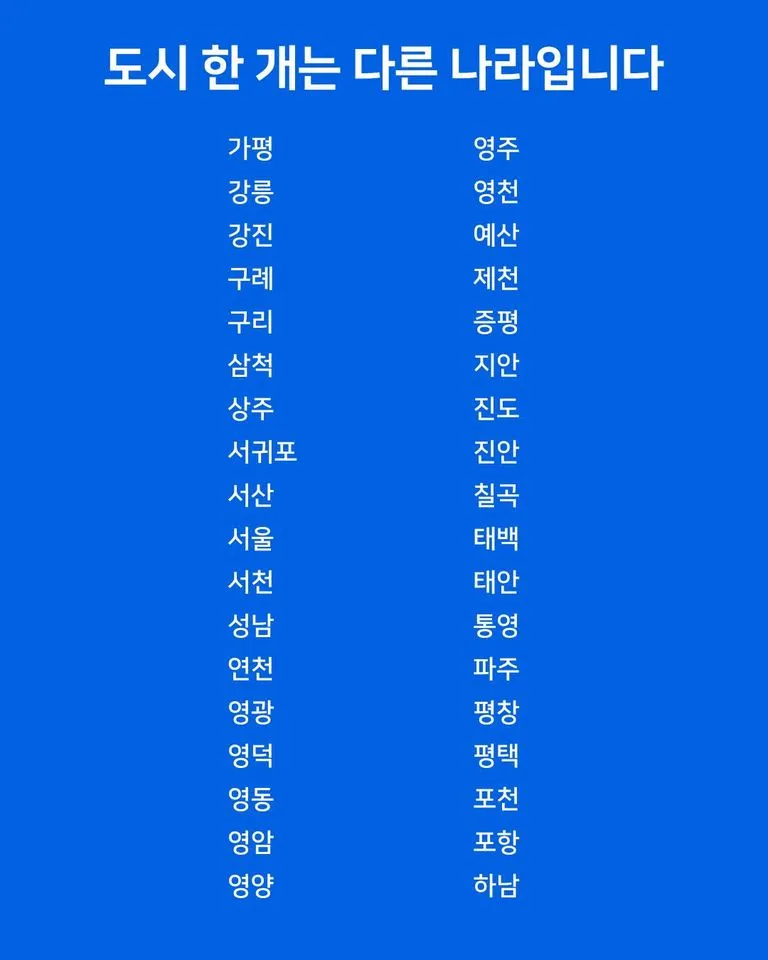 [스크랩] [흥미돋]다음 중 대한민국 도시가 아닌 곳은 어디일까요? 작성자밀크티진한맛|작성시간25.11.17|조회수13,868 목록 댓글 56 글자크기 작게가 글자크기 크게가 출처: 여성시대 양한더쿠 다음검색 스크랩 원문 : *여성시대* 차분한 20대들의 알흠다운 공간 현재 게시글 추가 기능 열기 북마크 공유하기 신고 센터로 신고 댓글 댓글 56 댓글쓰기 답글쓰기 댓글 리스트 작성자마라탕수육개장 | 작성시간 25.11.17 지안? 작성자한정원 | 작성시간 25.11.17 지안 작성자어쩌달 | 작성시간 25.11.17 지안 작성자뱜뱜 | 작성시간 25.11.17 진안이랑 지안이 어디야아 진안은 전북이구나 작성자포게티 | 작성시간 25.11.17 지안 댓글 전체보기