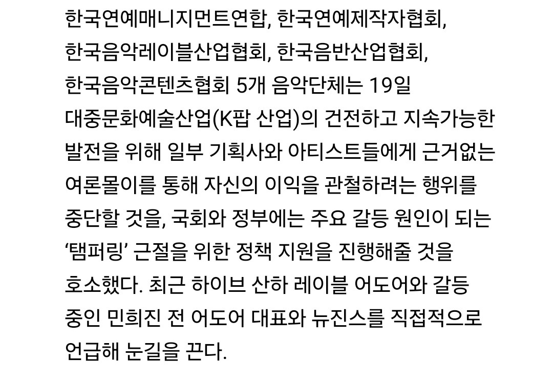 같은 일이 발생하는걸 막기위해 뉴진스로 본보기를 보여주길 원하고있음